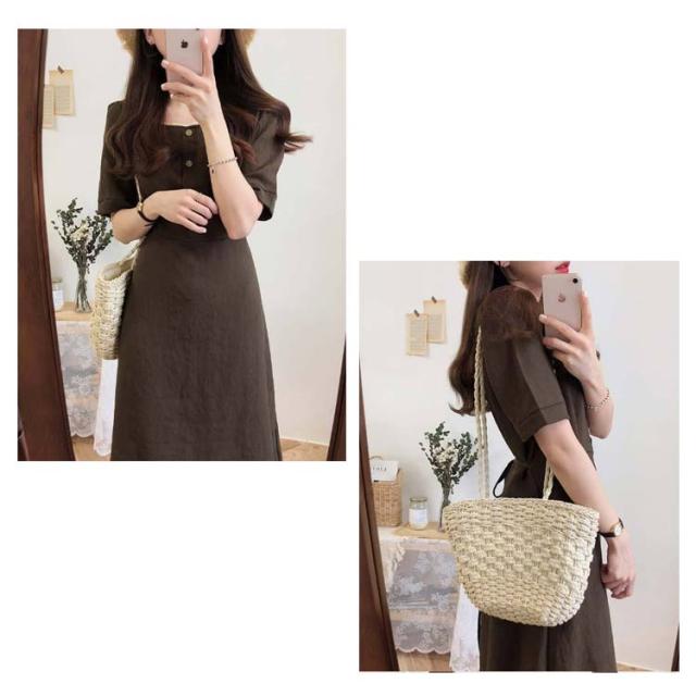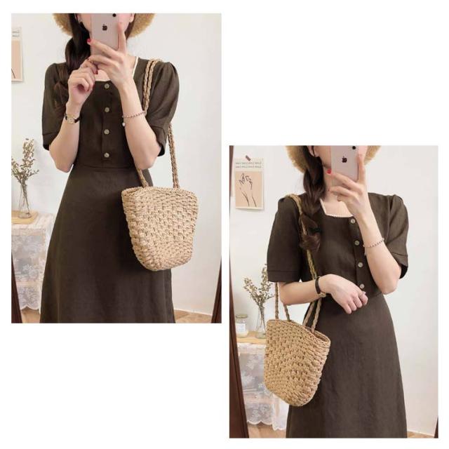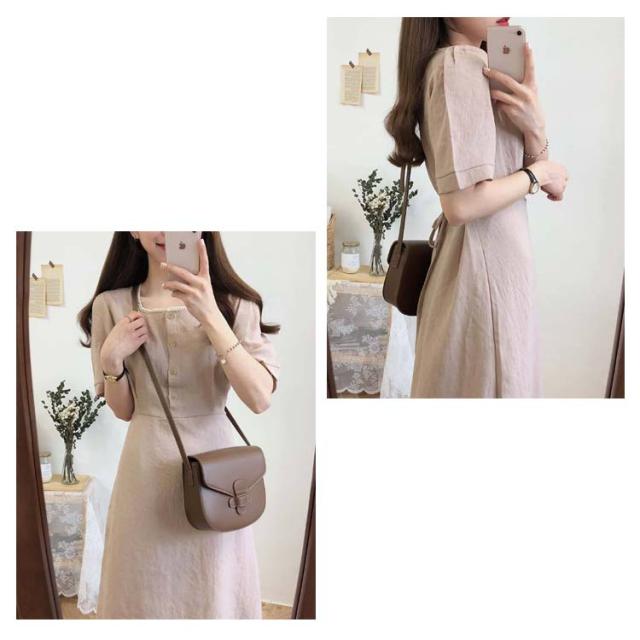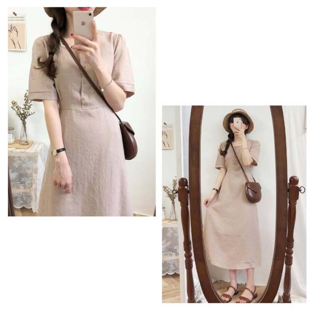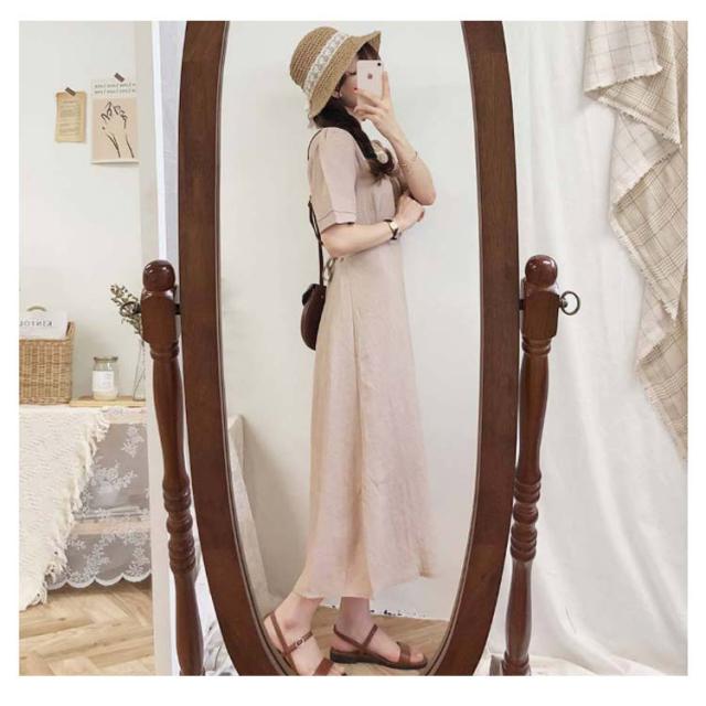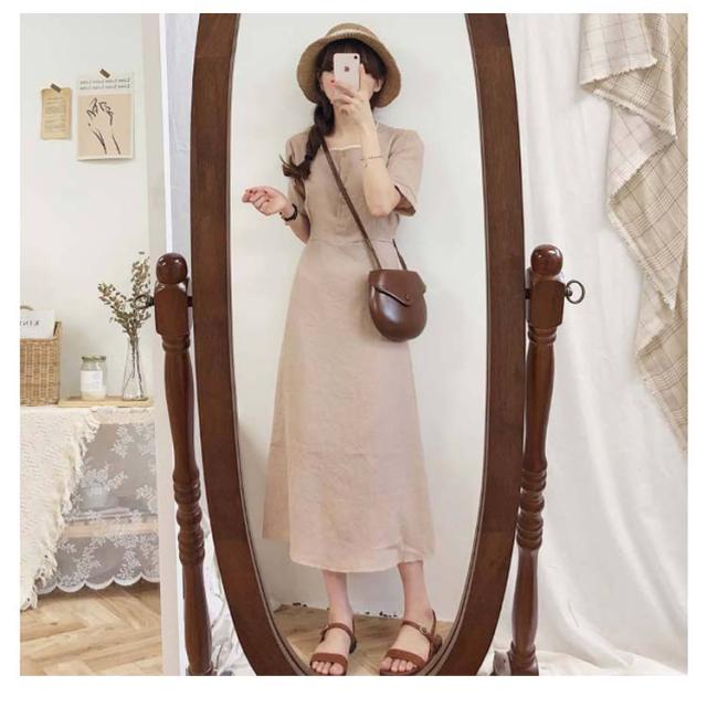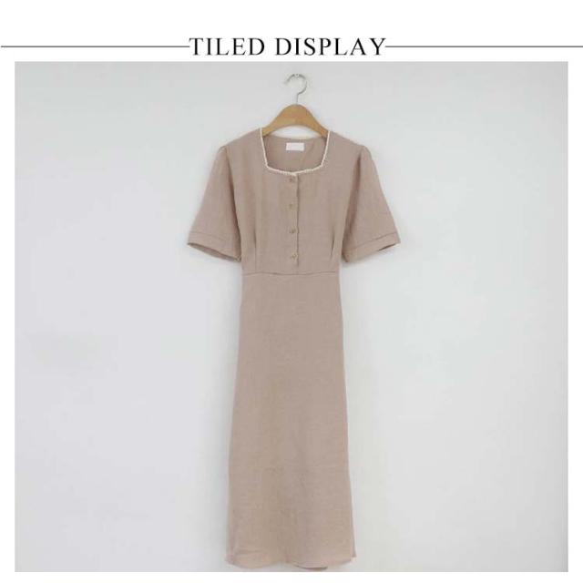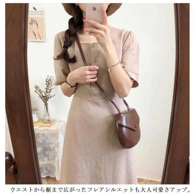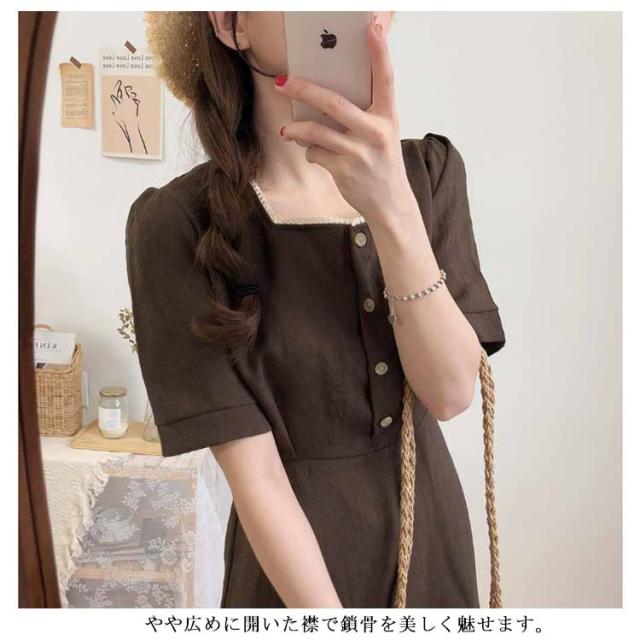 送料無料 レディース ワンピース スクエアネック パフスリーブ 半袖 ミモレ丈ワンピース ロング丈 ハイウエスト トレロ 可愛い ナチュラル 森ガール Aライン フレア 無地 上品 夏物 清楚 オフィス お出かけ 普段着 韓国スタイル おしゃれ