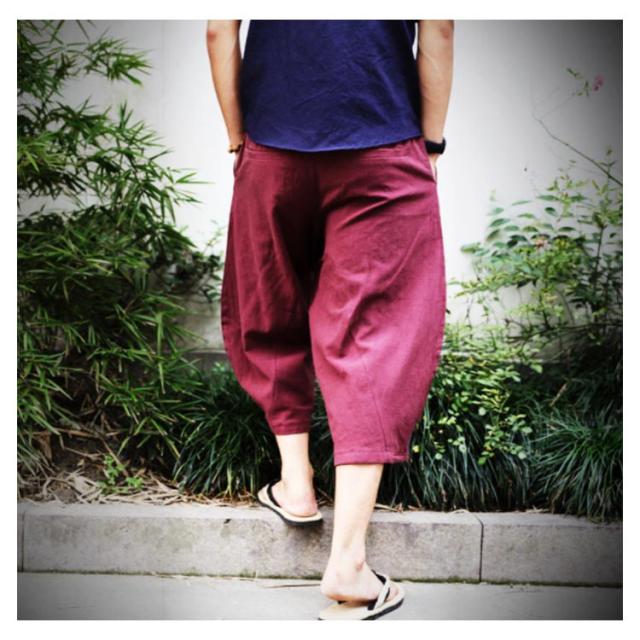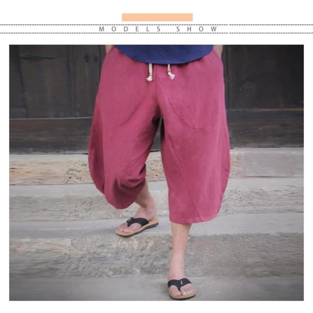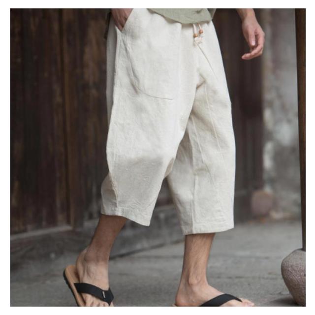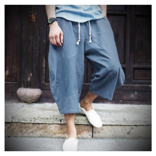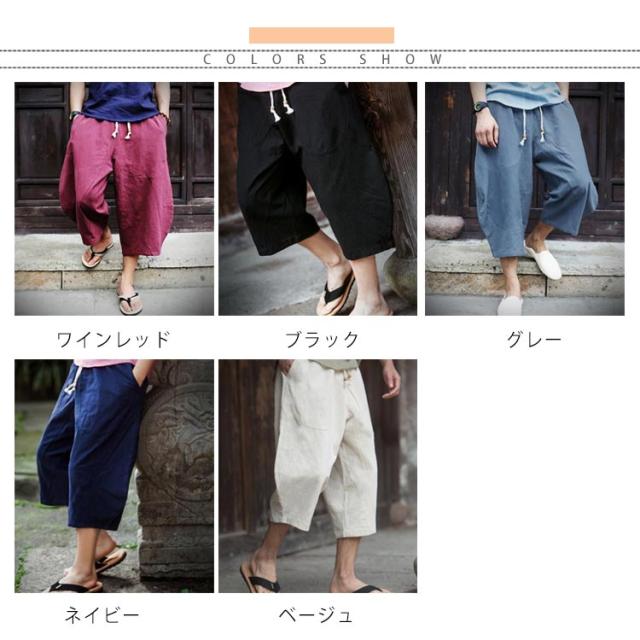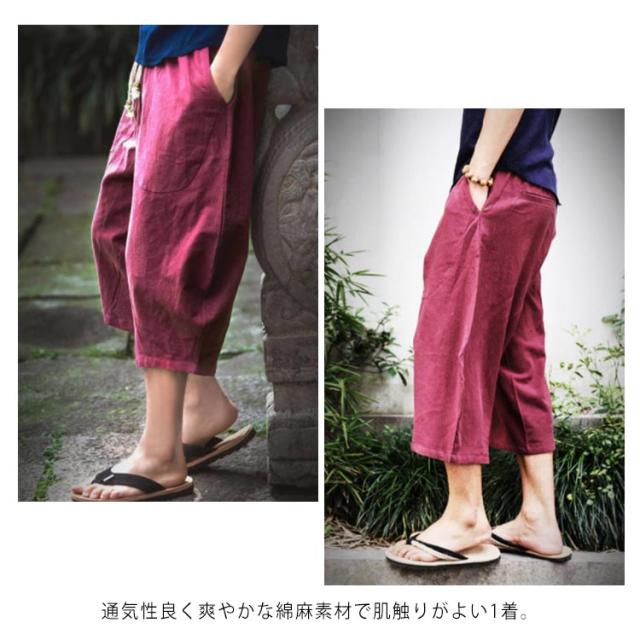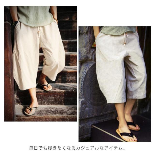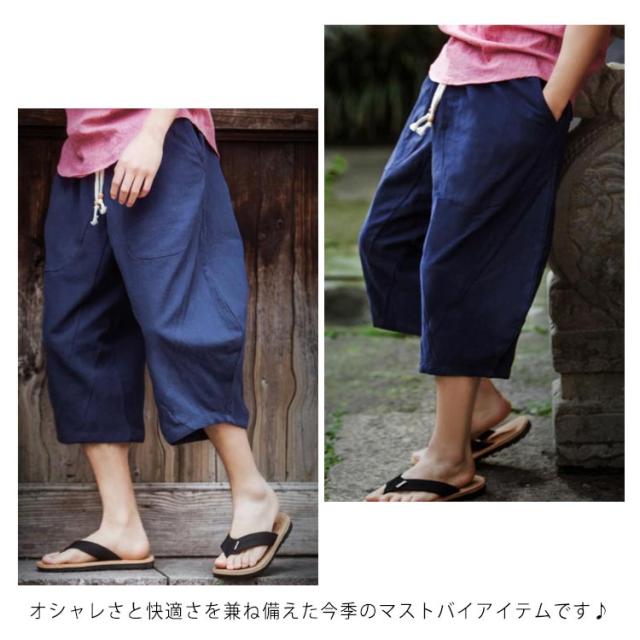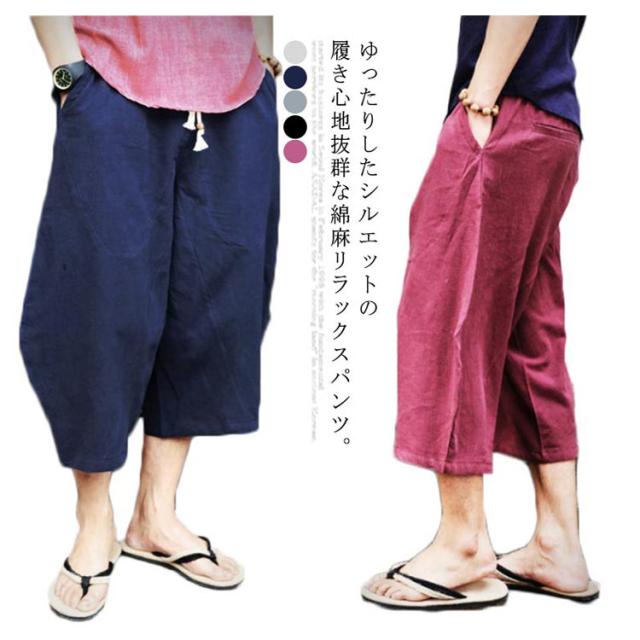 リネンパンツ 7分丈 綿麻パンツ ワイドパンツ サルエルパンツ イージーパンツ メンズ ロングパンツ リラックスパンツ 麻混 綿麻 リネン コットンリネン 送料無料