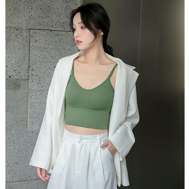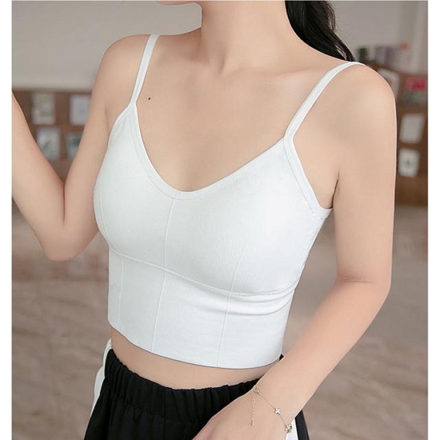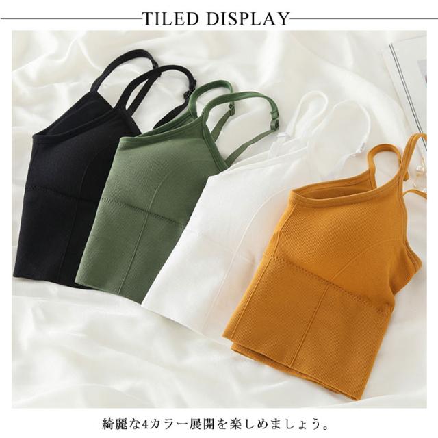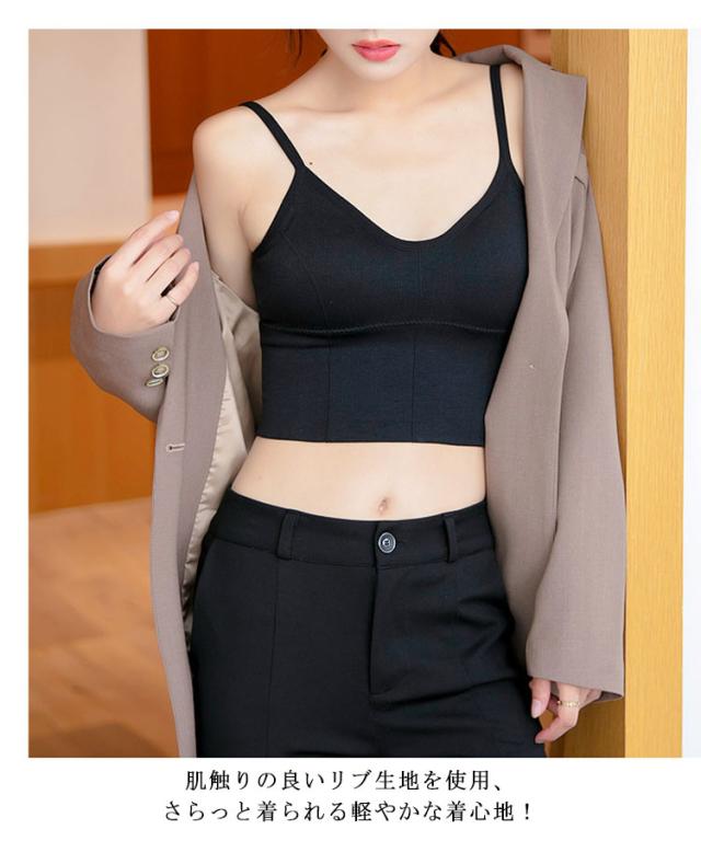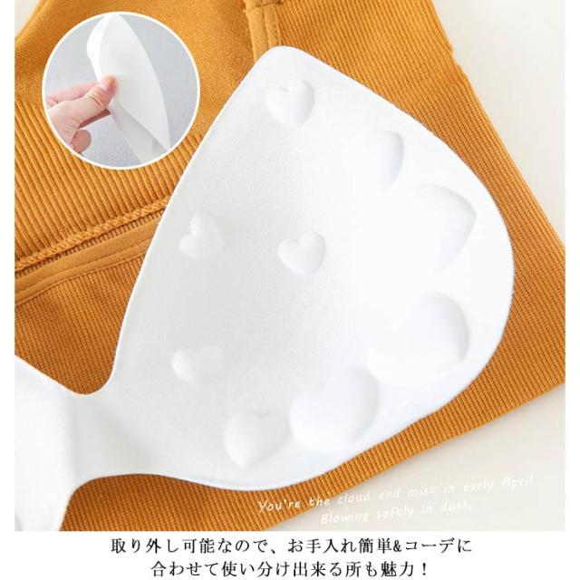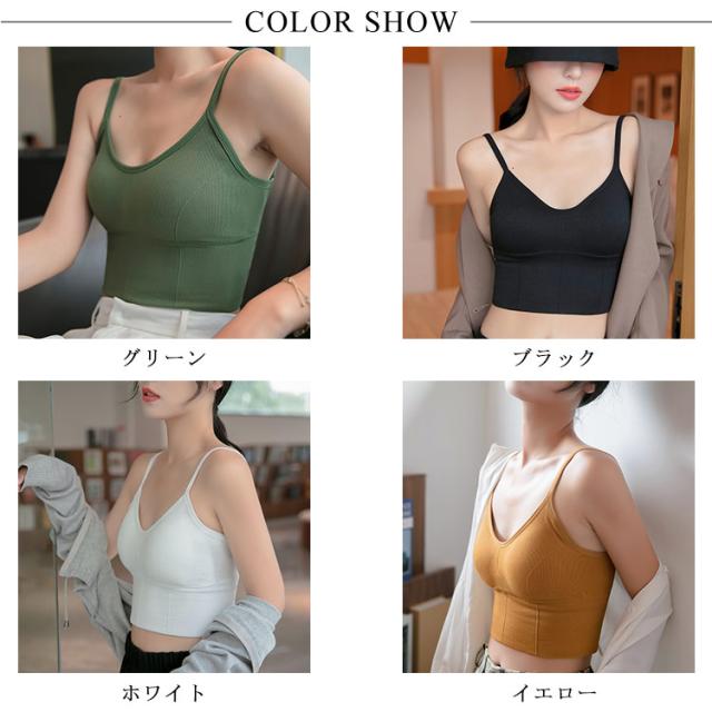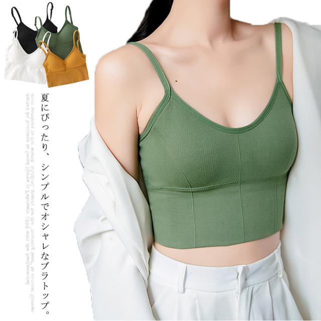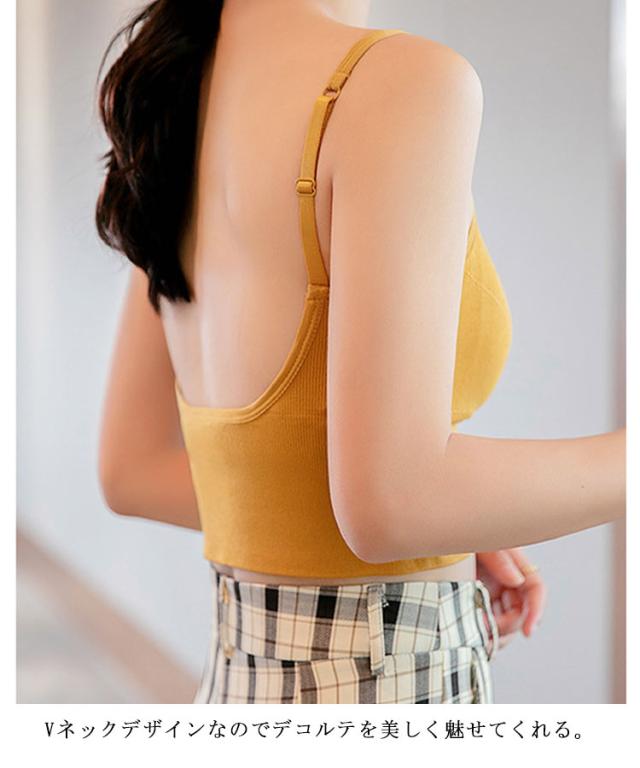 | 夏にぴったり、シンプルでオシャレなブラトップ。 締め付け感のないノンワイヤー仕様。 肌触りの良いリブ生地を使用、さらっと着られる軽やかな着心地! Vネックデザインなのでデコルテを美しく魅せてくれる。 | |