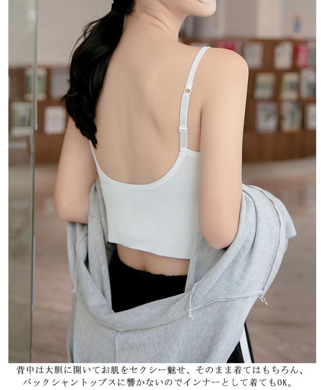 送料無料 リブキャミソール レディース Uオープンバック インナー カップ付き ブラトップ ショート丈 下着 キャミソール ベアトップブラ ストレスフリー 肌着 伸縮性 柔らか シンプル 無地 セクシー カジュアル お洒落 キレイめ 春夏