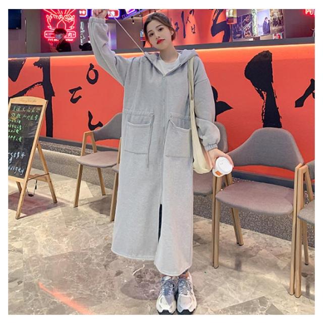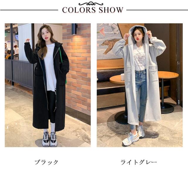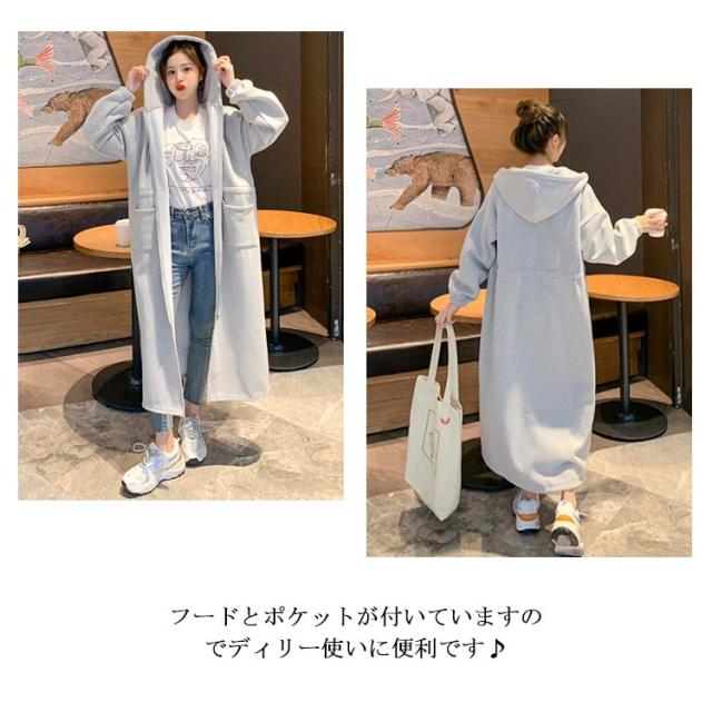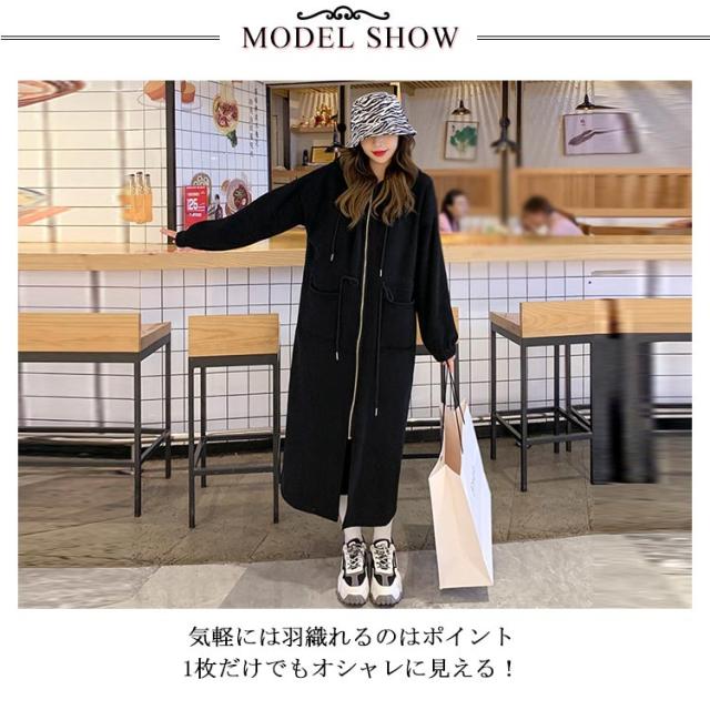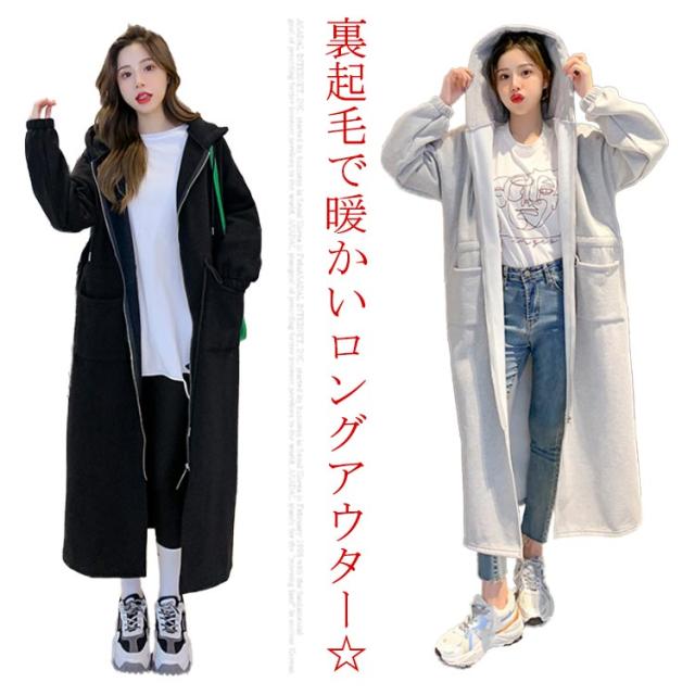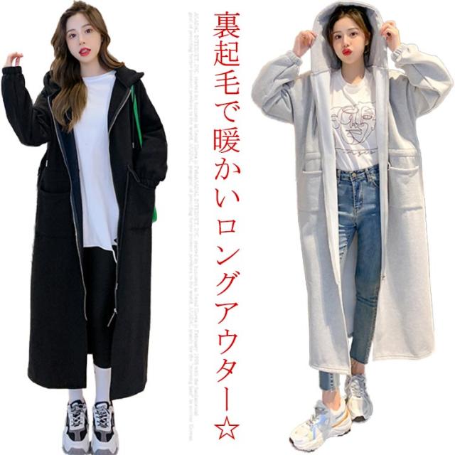 ロング丈パーカー コート レディース 人気 モッズコート風 トレンド 人気 裏起毛スエット スウェット ロング丈 ジップアップ フード付き アウター ゆったり
