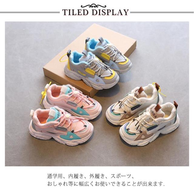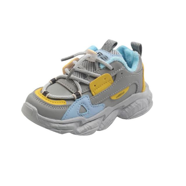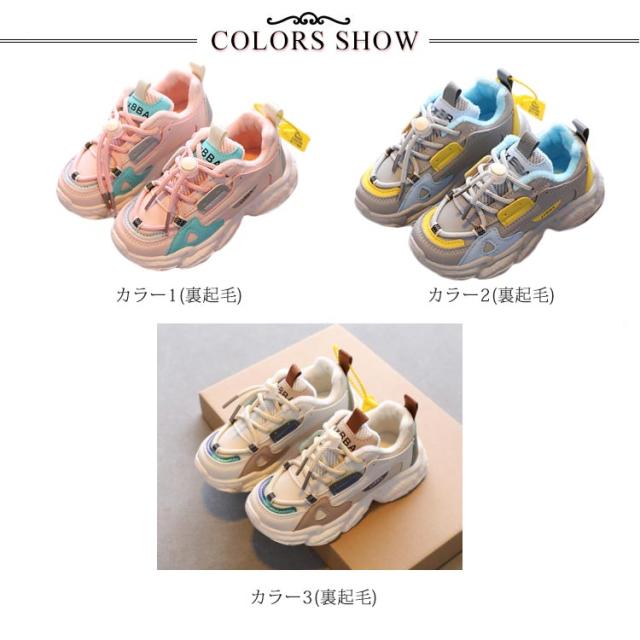 キッズ スニーカー ダッドスニーカー 男の子 女の子 裏起毛 暖かい 子供 ダッドシューズ ジュニア 軽い 歩きやすい かわいい カラフル ピンク ホワイト グレー グレー 厚底 春 秋冬 トレンド 運動 靴 滑り止め