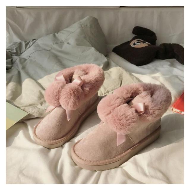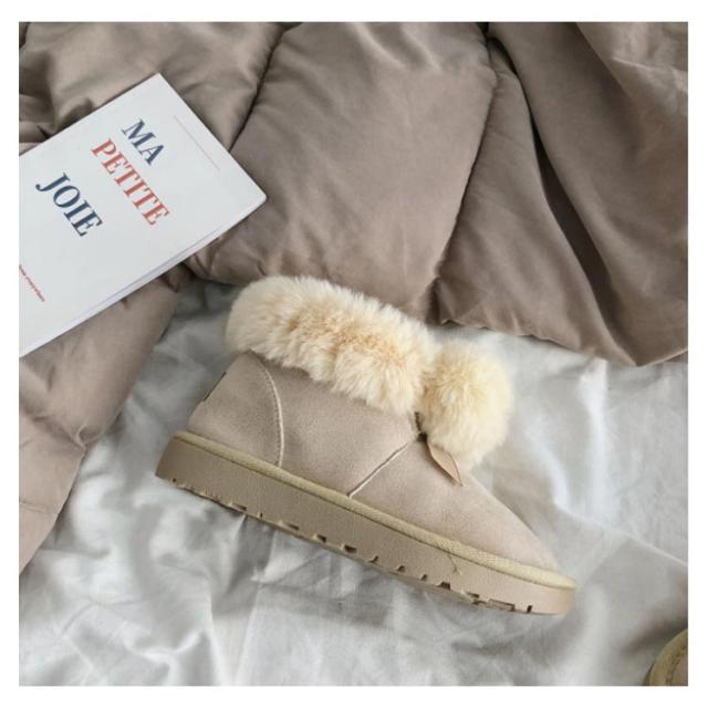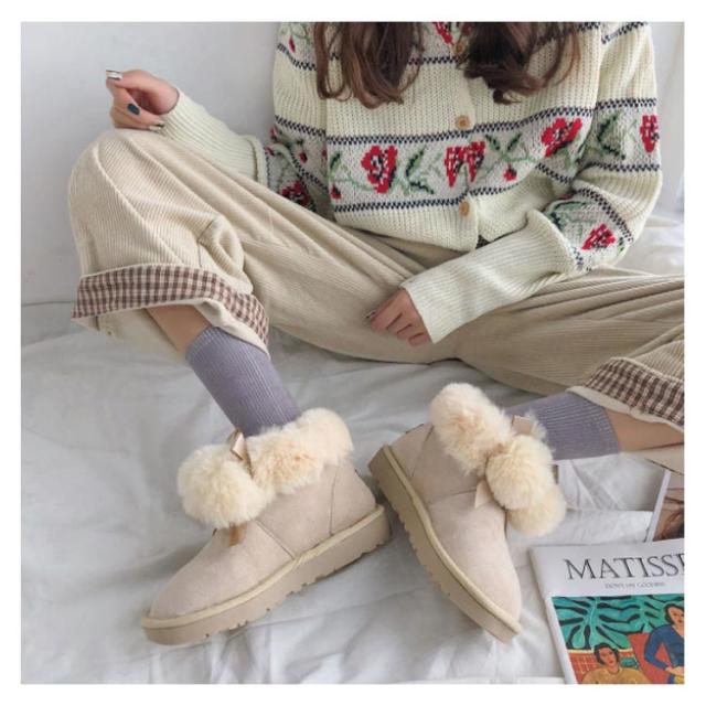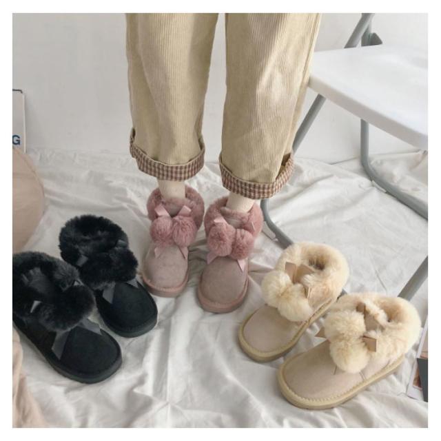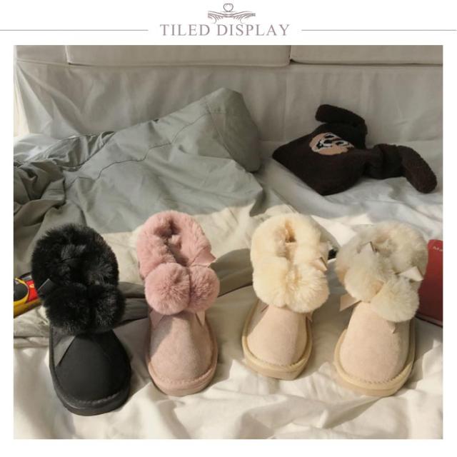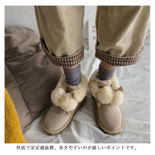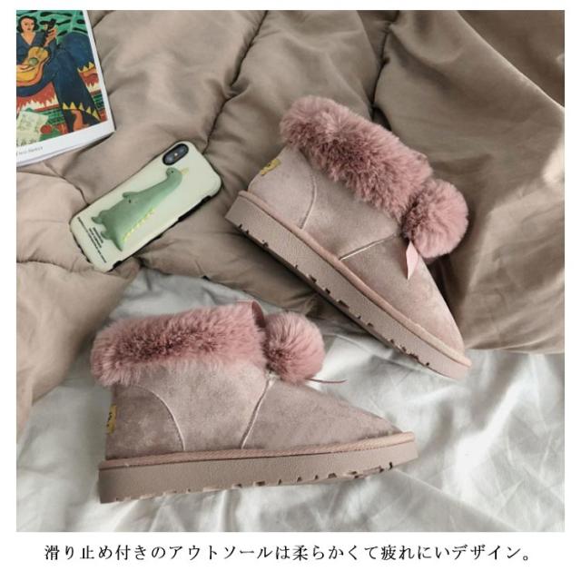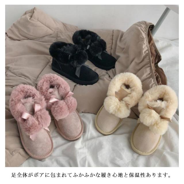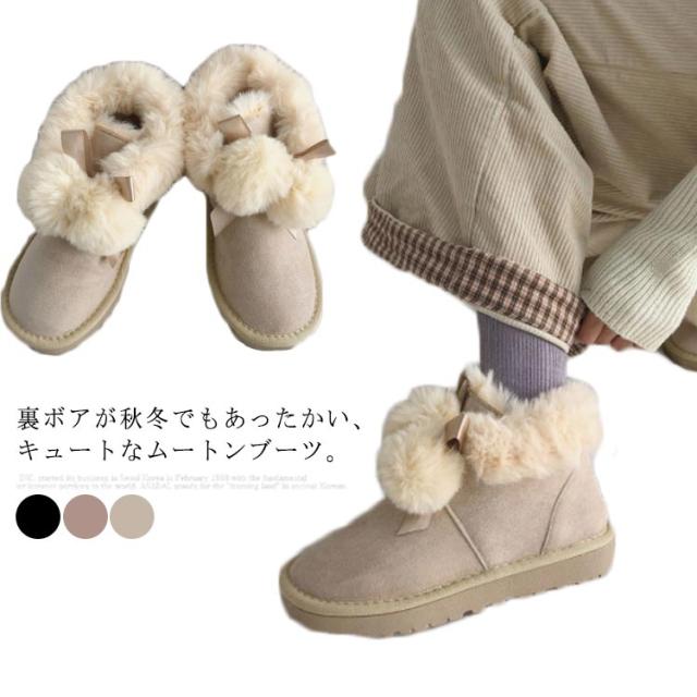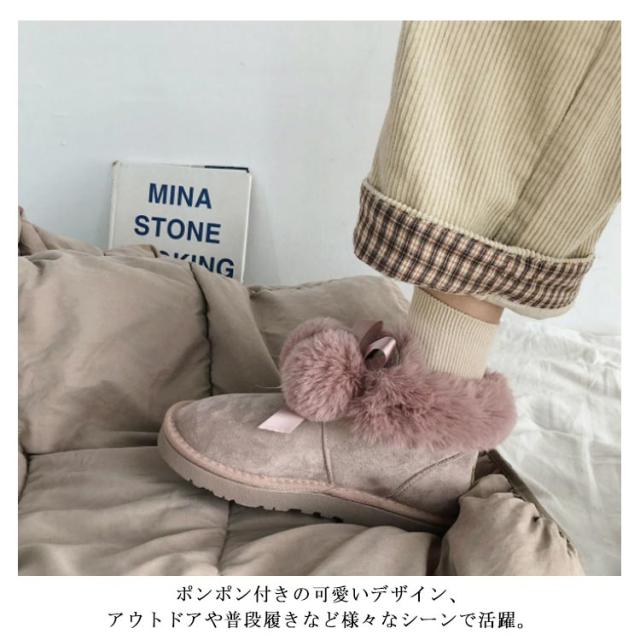 ムートンブーツ ショートブーツ レディース 冬 裏ボア あったか 防寒 靴 可愛い ポンポン付き ファー フラット 保温 防滑 暖かい もこもこ ふわふわ 履きやすい 歩きやすい シューズ スノーブーツ おしゃれ