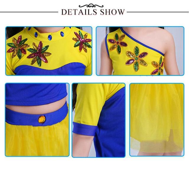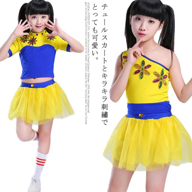 キッズダンス衣装 チアガール スカート セットアップ 体操服 キラキラ 刺? ワンショルダー 女の子 キッズ 子供 ダンス衣装 ダンス 衣装 キッズ 半袖 演出服 かわいい ガールズ 子供服 幼稚園 110 120 130 140 150 160