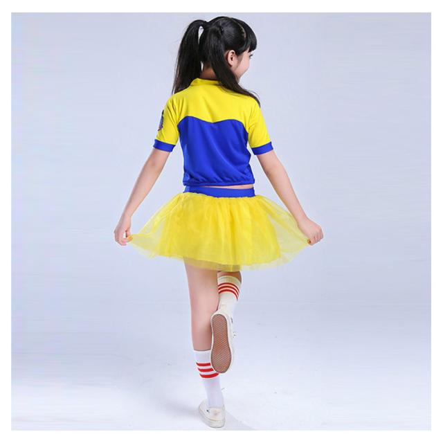 | チュールスカートとキラキラ刺?でとっても可愛い。 肌に優しい綿素材を使い着心地が抜群。 2タイプがお揃って、団体演出服としても大お勧めいたします。 ストレッチ素材が混ざっているのでとっても動きやすい! ポンポンを持ってバッチリ応援したくなっちゃいます。♪ | |