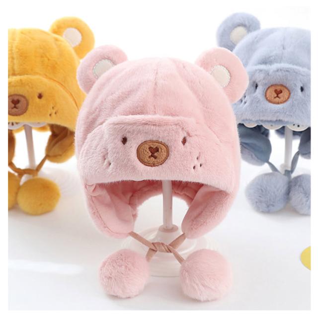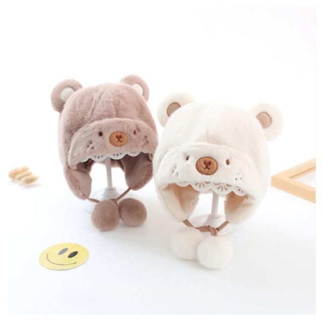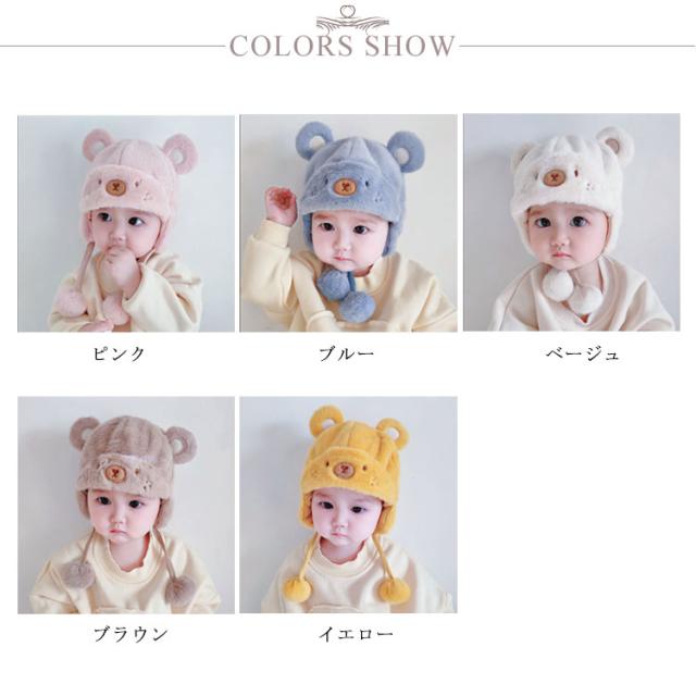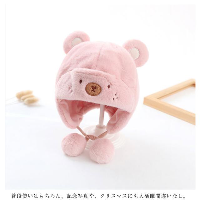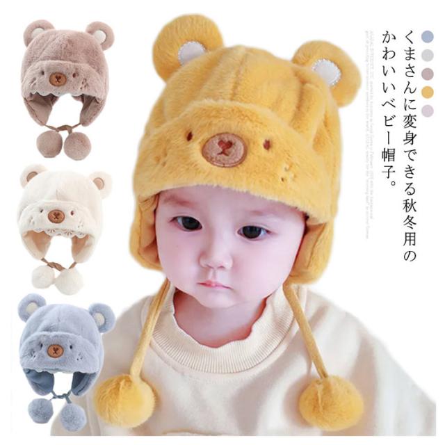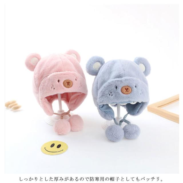 ベビー 帽子 秋冬 男の子 女の子 かわいい ふわふわ 赤ちゃん 暖かい 耳当て ボンボン付き 子供 熊 クマ くま 耳 防寒 おしゃれ キャップ 雪遊び 雪 スノー スキー出産祝い プレゼント ギフト 送料無料