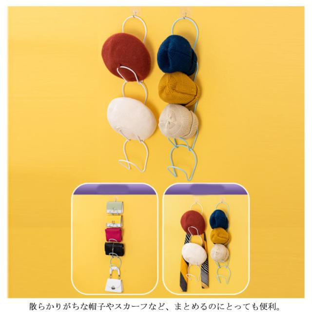 | 帽子やスカーフなどを縦にすっきり収納できる連結ハンガー。 吊り下げ式なので、場所をとらず収納できる優れ物。 帽子やバッグ、マフラーなどの小物を収納できます。 | |
