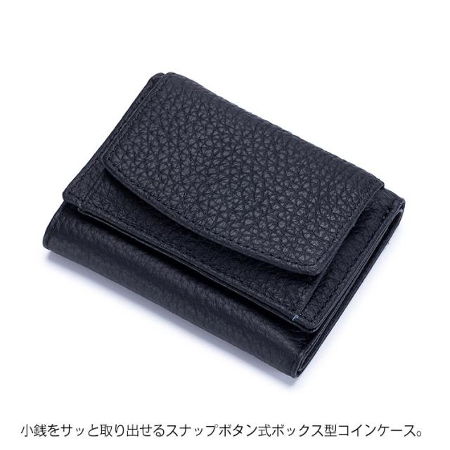| 小銭をサッと取り出せるスナップボタン式ボックス型コインケースの三つ折り財布です♪ シボ感のある表面は柔らかでナチュラルな印象。 人情報を盗んで悪用するなどの犯罪から守るスキミング防止機能付き。 三つ折りを開くと仕切り付き札入れが1カ所カードポケットが6カ所もあるので必要なものをスッキリと収納できます。 | |