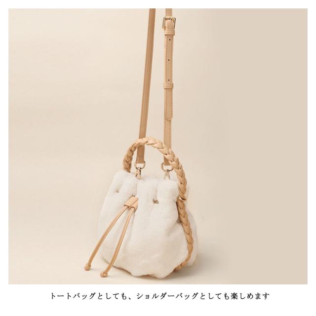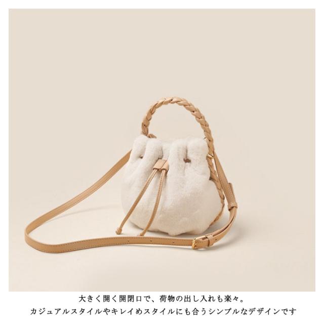ミニ トートバッグ レディース 巾着バッグ 斜め掛け ハンドバッグ 2WAY フェイクファー かわいい 秋冬 ふわふわ ショルダー シンプル おしゃれ ドロスト 女の子 軽量 ホワイト プレゼント ギフト 送料無料