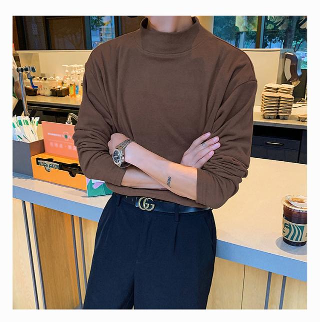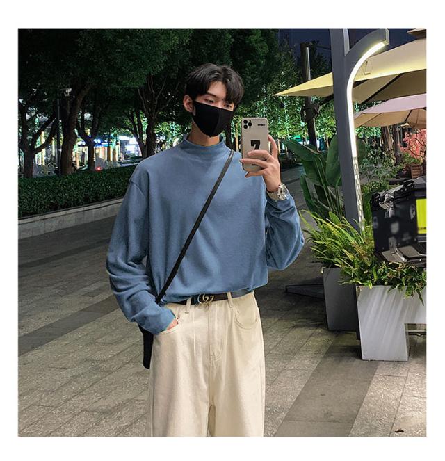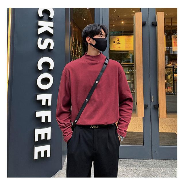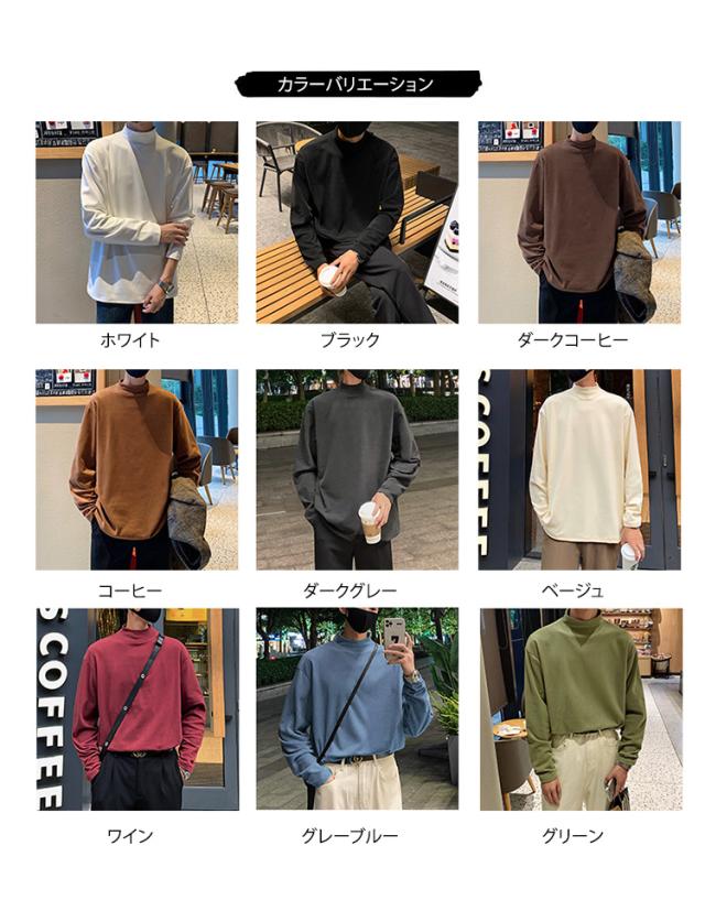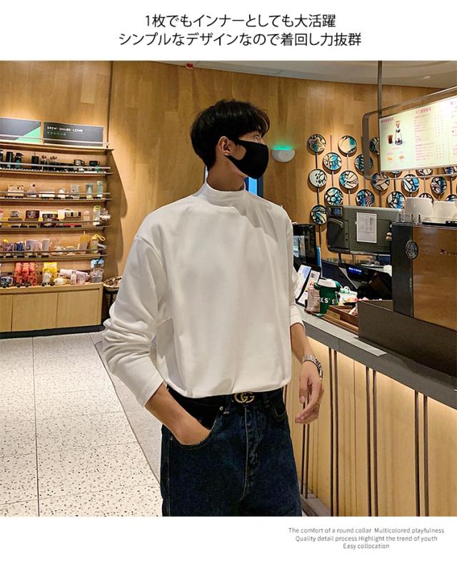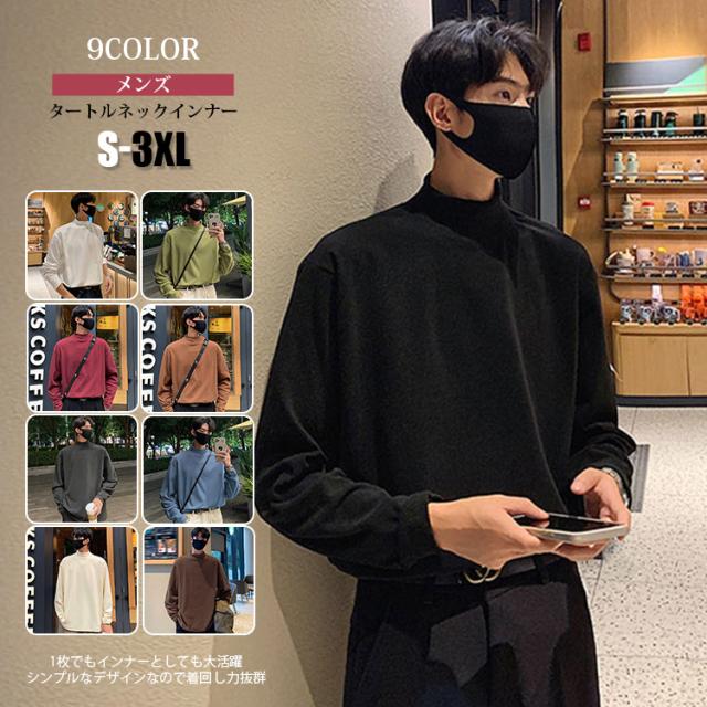 タートルネックインナー 長袖Tシャツ メンズ 無地 ハイネック タートルネック ロングT ロングtシャツ 9カラー Tシャツ インナー モックネック 綿トップス トップス