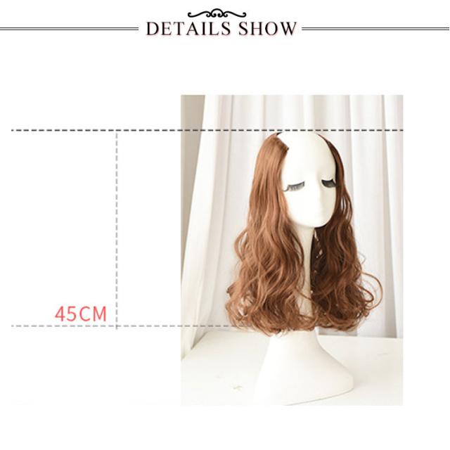 | 可愛いワンタッチエクステ? クリップ式で簡単に留められるワンタッチエクステ 。 ハーフウィッグ タイプなので長めのショートヘアの方やセミロングヘアの方に最適。 耐熱ファイバーなのでコテ・アイロン・ドライヤー180℃まで使用OK。 ウィッグの湿度を適度に持たせるためには、スプレーを利用することをオススメします。 | |