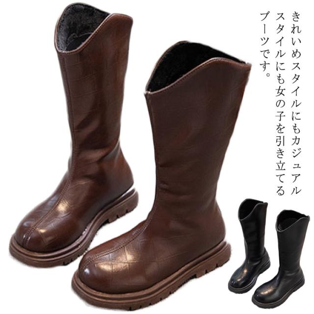 ブーツ キッズ ロングブーツ 長靴 子供靴 シューズ ジュニア 女の子 秋冬 裏起毛 プリンセス風 おしゃれ シンプル 黒 ブラウン ガールズ 春 滑り止め 通園通学 美脚 歩きやすい 軽量 アウトドア フェイクレザー 防水