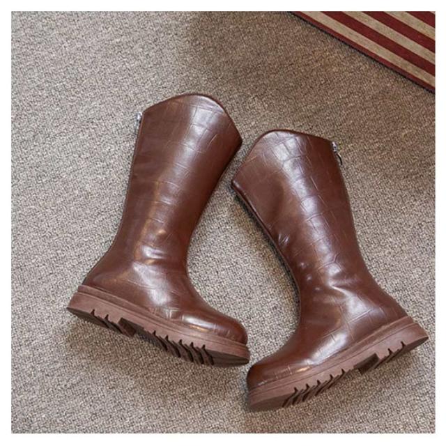| きれいめスタイルにもカジュアルスタイルにも女の子を引き立てるブーツです。 高級PU素材を使用され、アッパーは柔軟性であることで足に優しい。 光沢感があり、美脚効果も良いです。 バックにファスナーの着脱式、お子様でも脱ぎ履き楽々。 耐磨、耐震、防滑機能を搭載したゴムソール、歩きやすい! ファッションに合わせやすい2色をご用意しております。 様々な服に合わせやすくて足元から優雅な存在感を演出。 | |