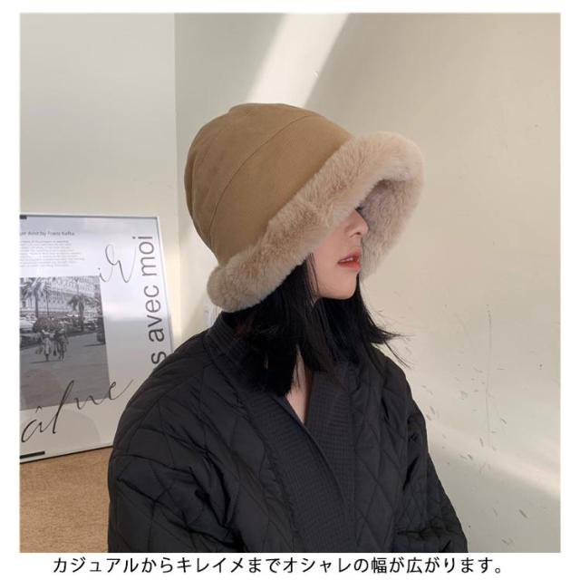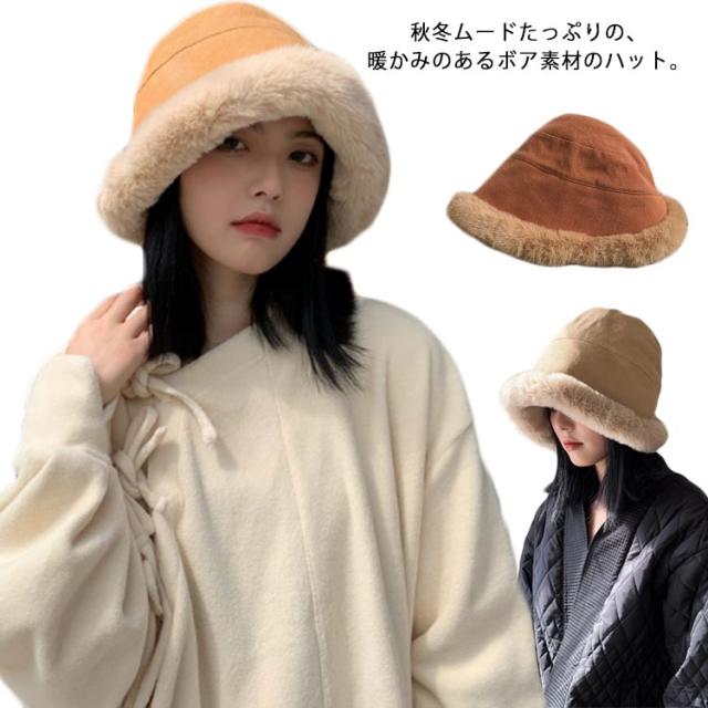 バケットハット ボアハット 秋冬 レディース 帽子 裏ボア ボアキャップ ふわふわ モコモコ 冬 防寒 あったか 厚手 ボリューム つば広帽子 折りたたみ 小顔効果 無地 おしゃれ 可愛い 韓国風 ファッション 女性 かわいい プレゼント 冬物 大きいサイズ 送料無料