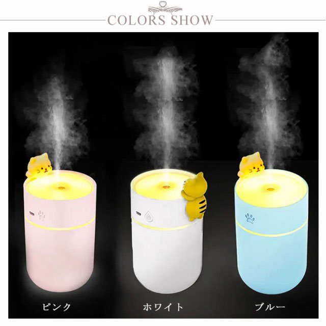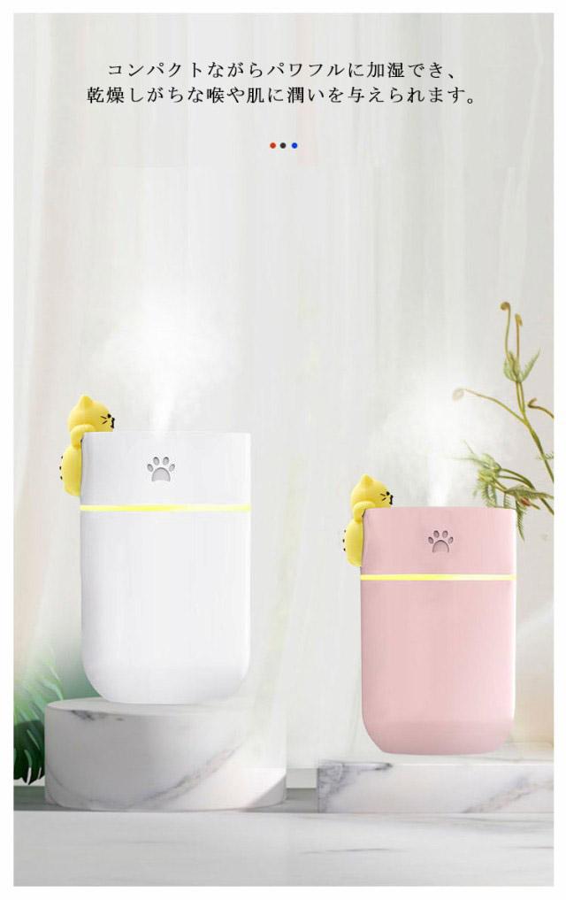 加湿器 卓上加湿器 小型 猫 ネコ ねこ かわいい 大容量 LEDライト付き USB充電式 除菌 持ち運び便利 寝室/オフィス/車載 コンパクト ミニ加湿器 お手入れ簡単 アロマ対応 シンプル おしゃれ 軽量 ギフト