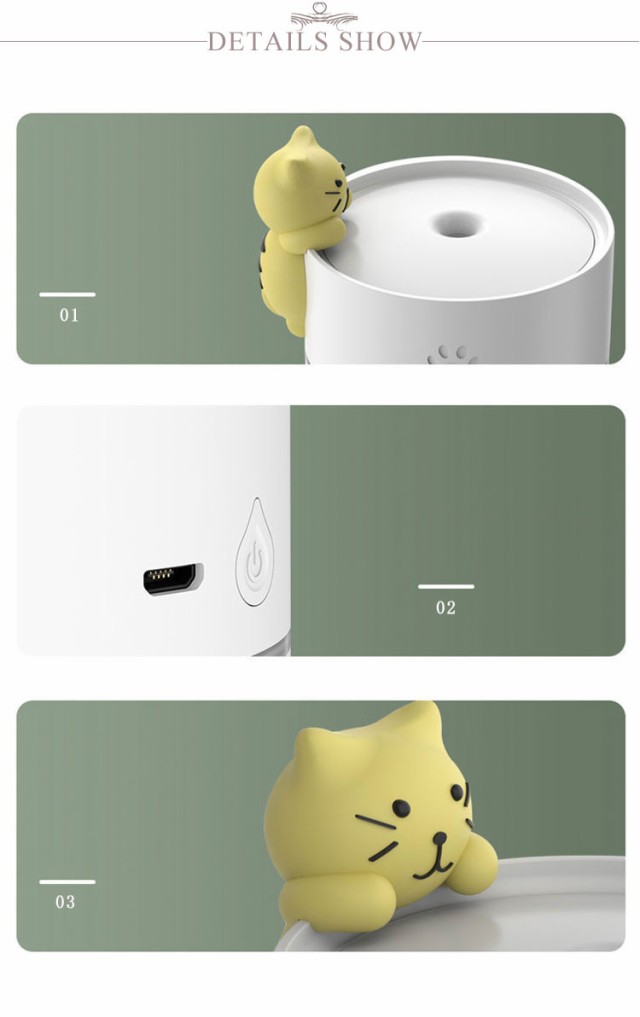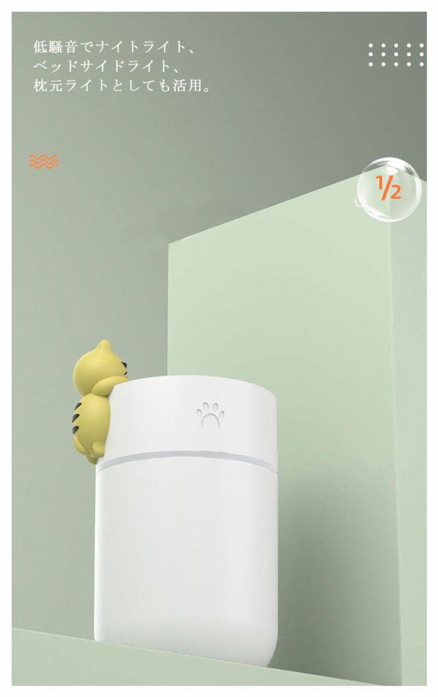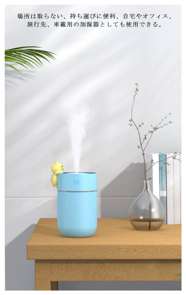 | 可愛いデザインの軽量でコンパクトな卓上加湿器 です。 コンパクトながらパワフルに加湿でき、乾燥しがちな喉や肌に潤いを与えられます。 場所は取らない、持ち運びに便利、自宅やオフィス、旅行先、車載用の加湿器としても使用できる。 LEDライト搭載、やさしく暖かい光は癒しの空間を作り出します。 低騒音でナイトライト、ベッドサイドライト、枕元ライトとしても活用。 | |