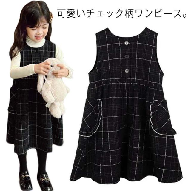 送料無料 子供服 キッズ ワンピース ベスト 裏起毛 Aライン ベビー 赤ちゃん チェック 可愛い お出かけ 防寒対策 子供用 通学着 女児 ジュニア 子供ワンピース 暖かい おしゃれ 秋 春 ガールズ 韓国風 ゆったり 子供ドレス 結婚式 発表会