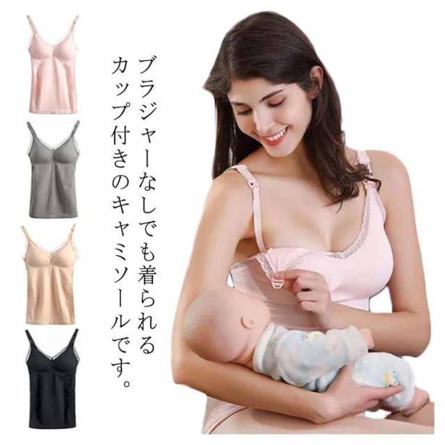 授乳キャミソール マタニティ 2枚セット 産前 産後用 大きいサイズ カップ付き 前開き パッド入り フロントオープン インナー 下着 ストレッチ 肌着 妊婦 ママ レース おしゃれ かわいい ブラトップ ノンワイヤー 送料無料