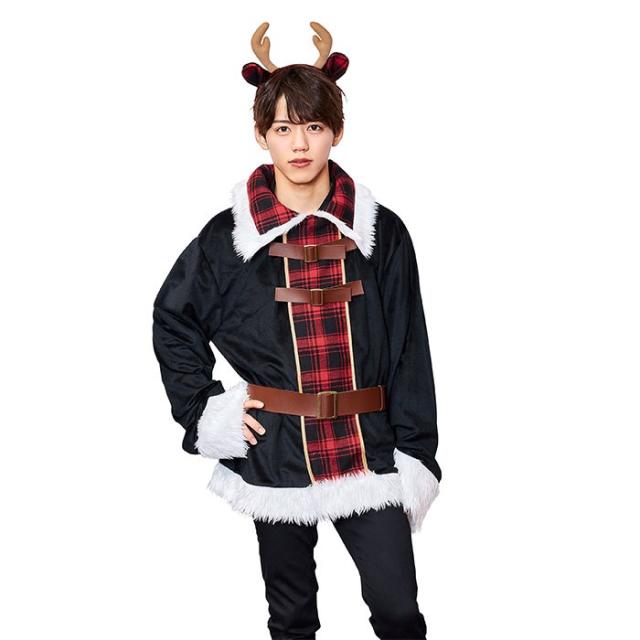 ベルト・バックルなどアパレル要素をデザインに取り込んだ男性好みのクリスマスコスチューム。チェックが親しみやすいトナカイ。カジュアルな感じでデニムを合わせたり、ブラックのパンツと合わせてもいい感じ。前面ファスナー開き。私服・制服・ワイシャツの上にはおるだけでカッコよく決まる。ライトユーザーはもちろん、ホスト系、アイドル系様々なタイプに刺さるデザイン。