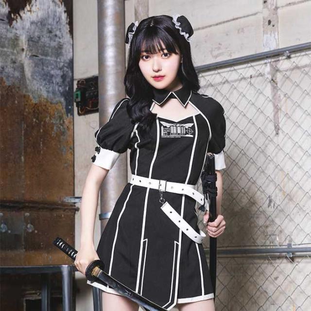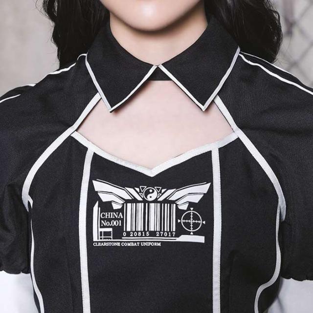 「ミステリアスで強くてかっこいい女の子」になりたいを叶える戦闘系コスチュームシリーズ。それぞれのモチーフに近代的なデザインを組み合わせ、クールでスタイリッシュなコスチュームに仕上げました。そのまま着るのはもちろん、お手持ちの小物や武器を合わせてアレンジしても楽しさが広がります。チャイナは、デコルテのヘルシーな露出感と、ウエストのベルト、袖口のチャイナボタンがポイントです。たくさんのラインによってスタイルアップ効果も見込めます。胸元には世界観を深めるオリジナルプリント入り。お団子カバーは付属のヘアピンで髪に固定してお使いください。