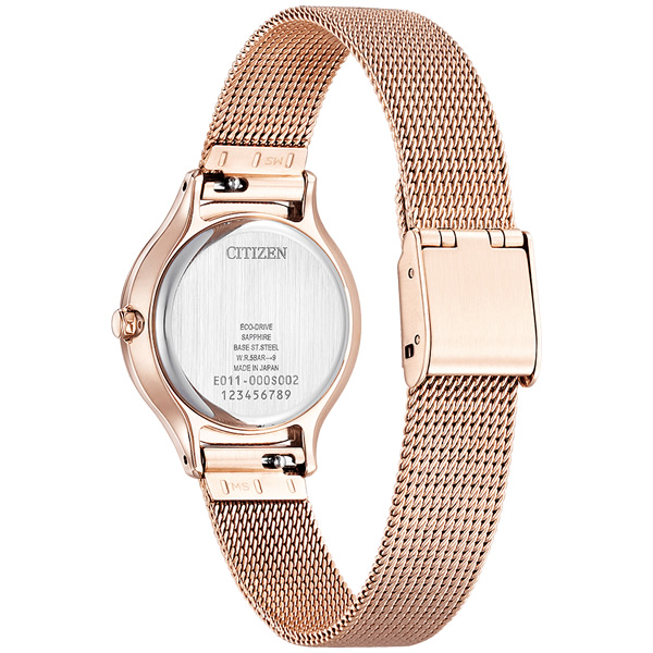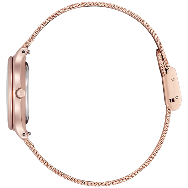 クロスシーで初めて、ご自分で簡単にバンド交換ができる チェンジャブル仕様がmizu collectionから登場。 ■動力 光発電エコ・ドライブ ■精度 ±15秒/月 ■持続時間 光発電6ヶ月 ■重量 38g ■厚み 8.1mm ■ケースサイズ 横 28.0mm ■ケース素材 ステンレス ■ケース表面処理 めっき(サクラ色) ■バンド素材・タイプ ステンレス フリータイプ ■バンド幅 12.0mm ■バンド調整可能サイズ 124〜184mm ■ガラス 球面サファイアガラス ■防水性能 5気圧防水 ■デザイン特徴 夜光(針) ■機能 充電警告機能 過充電防止機能 秒針停止機能 クイックスタート機能 フル充電時約6ヶ月可動 日付表示 日付早修正機能 付属品 革バンドバックル ■原産国 日本製 ※ご利用の環境により、ウェブ画像と実物で色の見え方が異なる場合があります。 ※記載は商品仕様の一部です。仕様説明不足等の理由での返品はできません。特に適合等は必ずご確認ください。