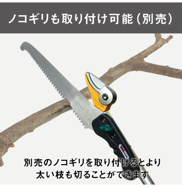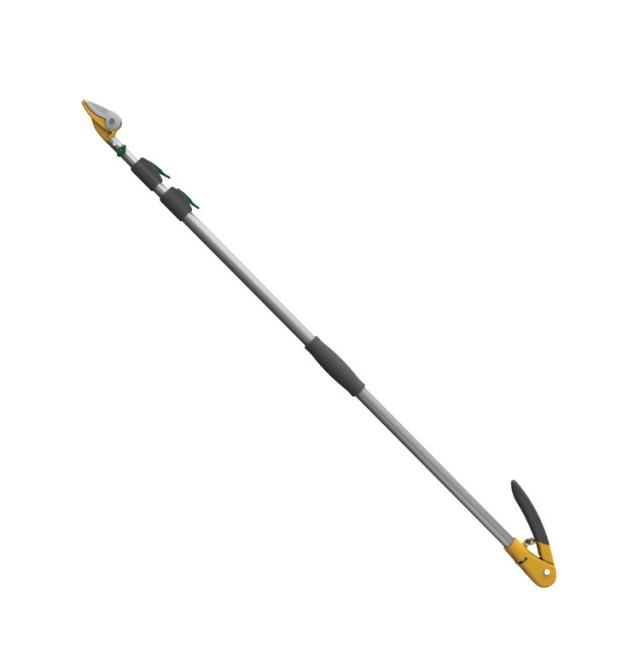新構造ハンドルで力が入れやすく楽に枝を切るれる構造になった、13段階伸縮高枝切り