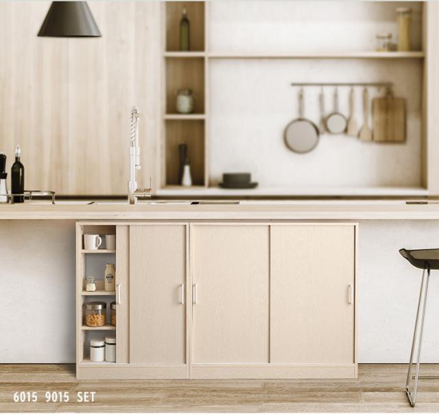 キッチンカウンター下 引き戸収納6020 幅60cm キッチン収納 リビングラック キッチンカウンター カウンター下収納 キャビネット リビングボード 食器棚 収納棚 薄型 スリムラック 可動棚 引き戸 書棚 台所 おしゃれ 北欧