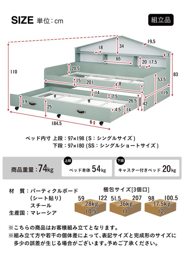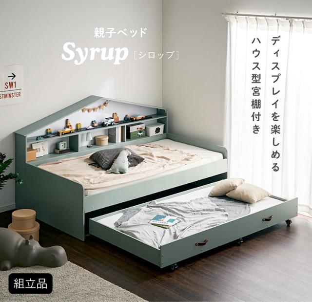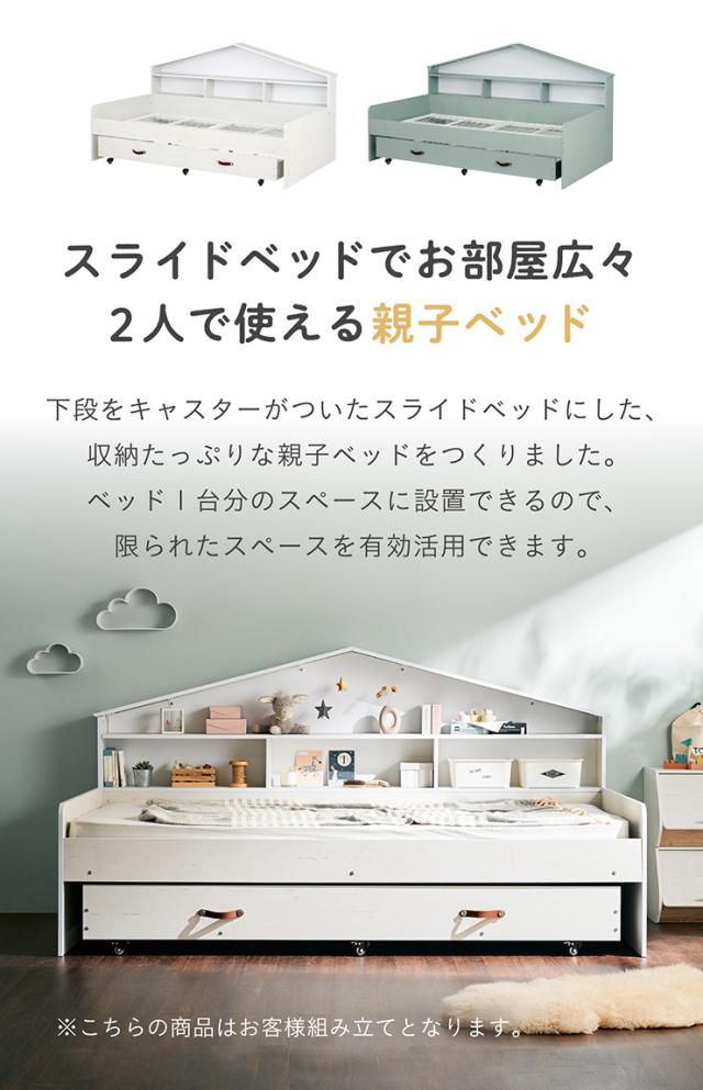 【マットレス付き】ハウス型サイド宮付き 親子ベッド Syrup(シロップ) 2色対応 二段ベッド 二段ベット 2段ベッド 2段ベット スライドベッド スライドベット 親子ベット 収納ベッド 収納 ベット コンパクト 子供部屋