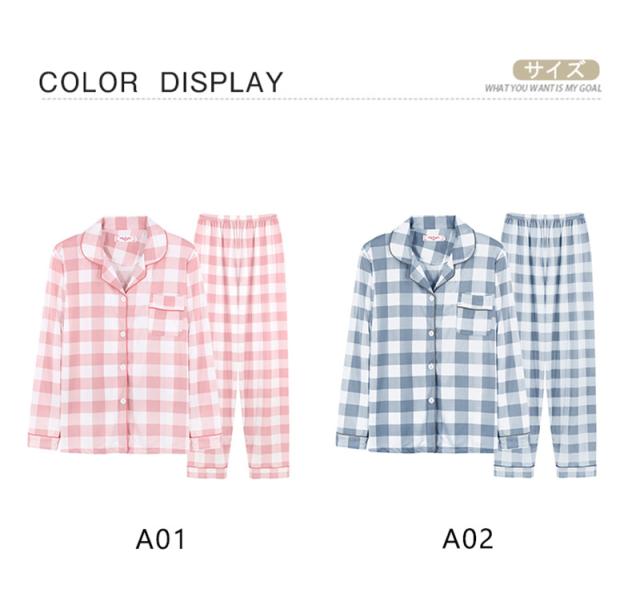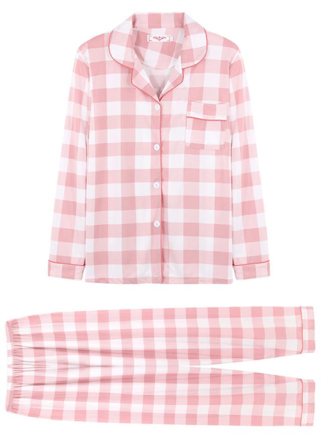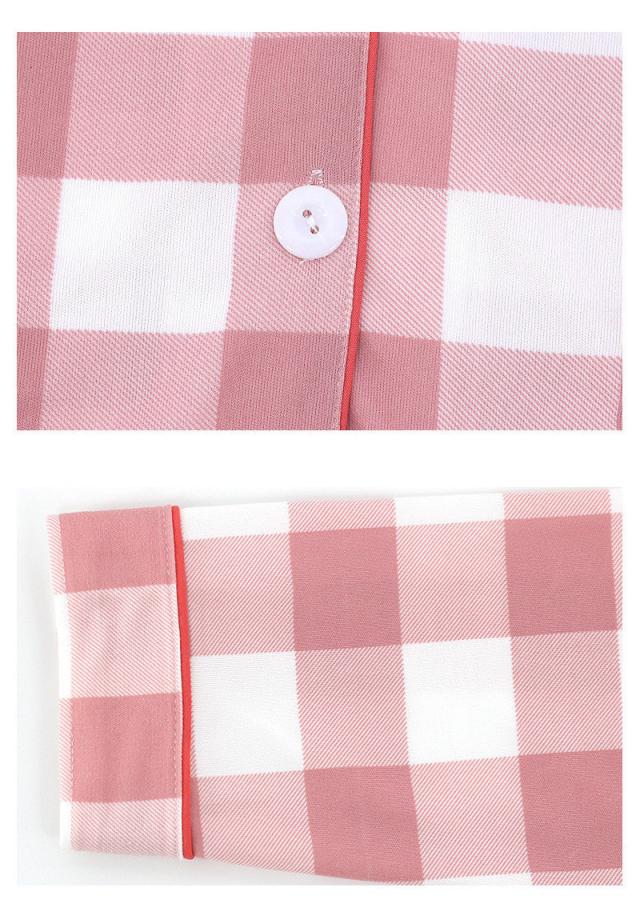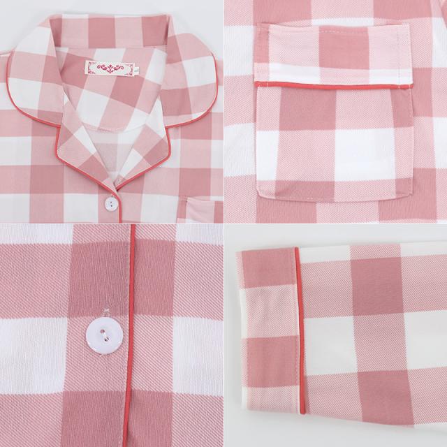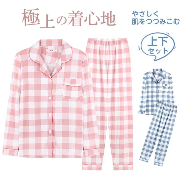 ルームウェア パジャマ レディース 前開き 上下セット 長袖 長ズボン 春 秋 チェック柄 部屋着 寝間着 通気性 冷え対策 外