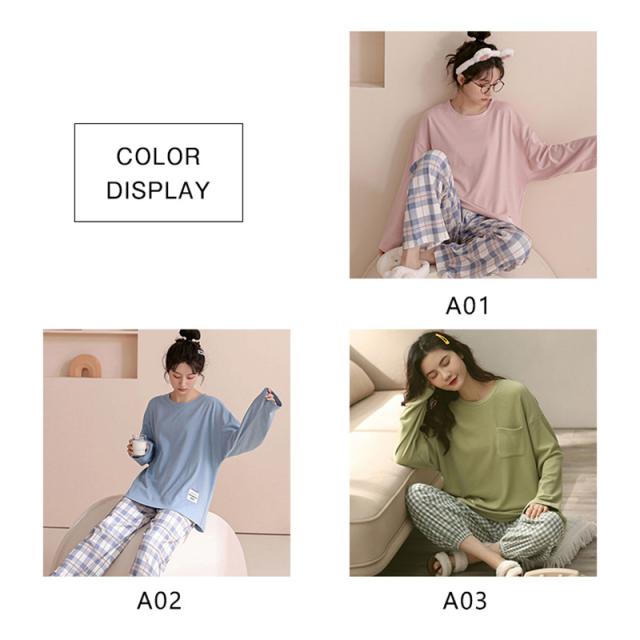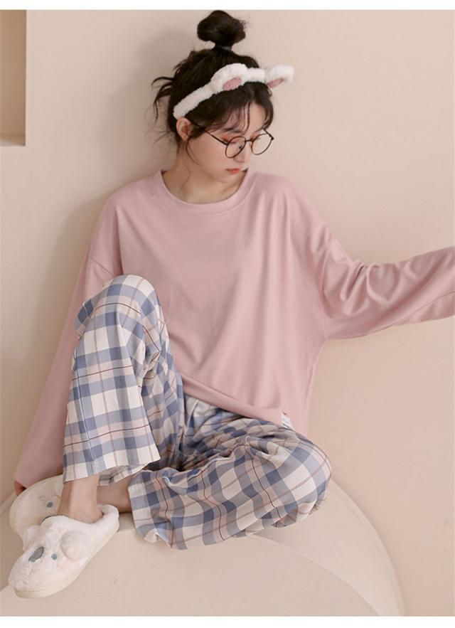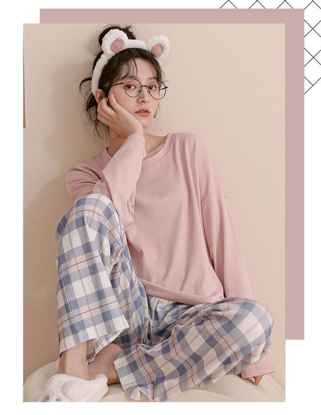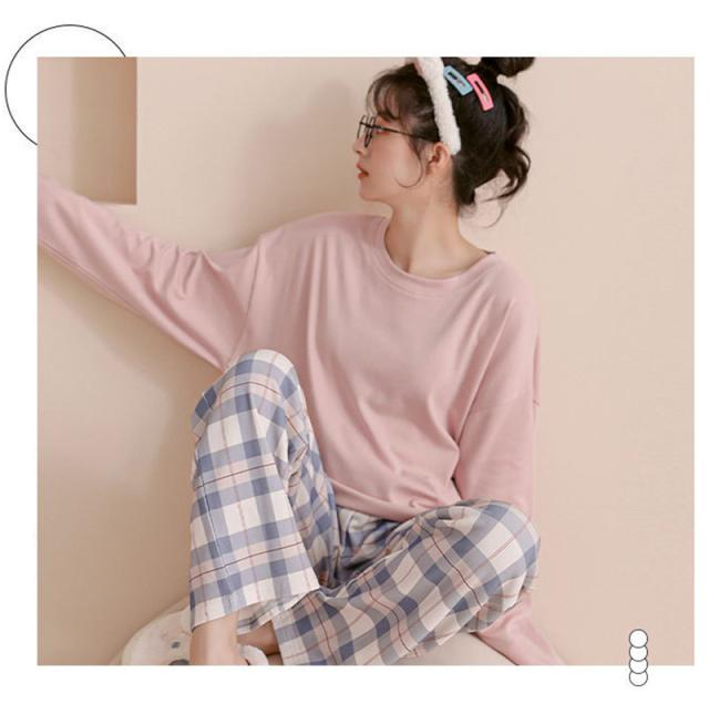 ルームウェア パジャマ レディース チェック柄 上下セット 長袖 長ズボン 春 秋 冬 部屋着 寝間着 通気性 ゆったり 外出 柔