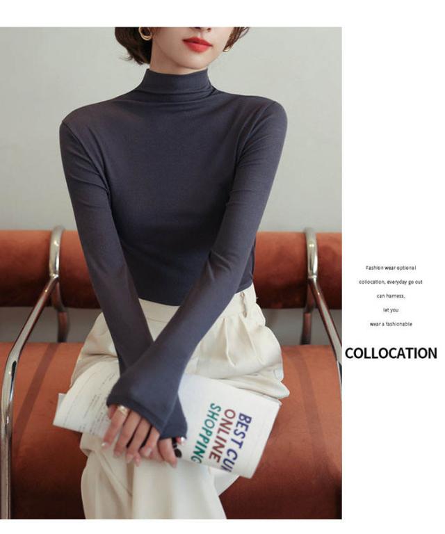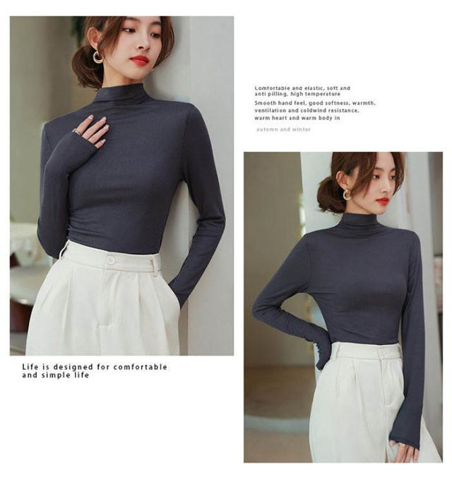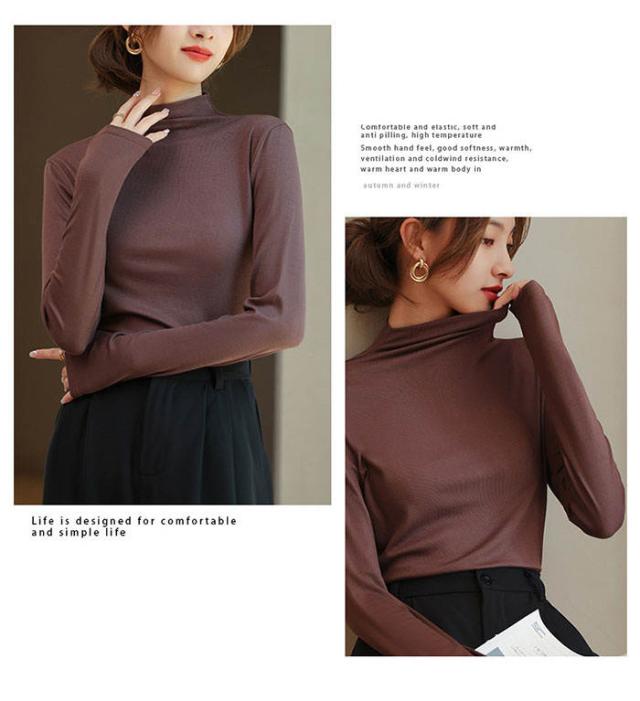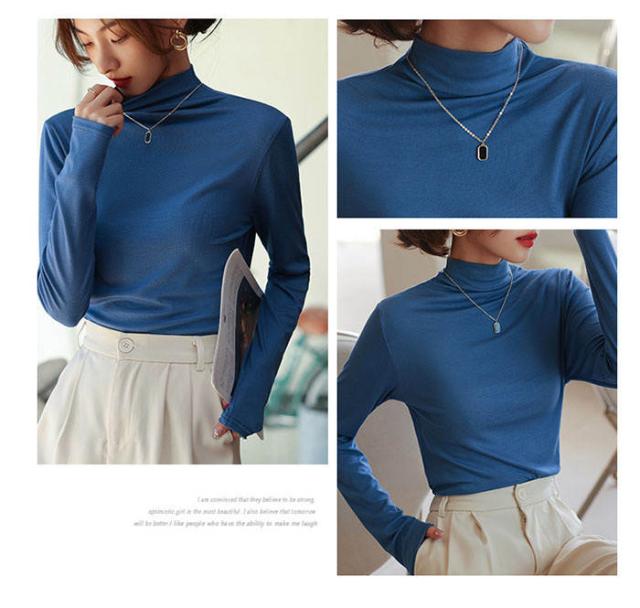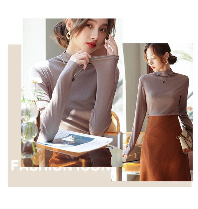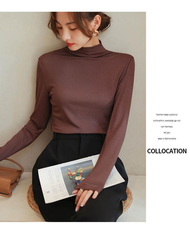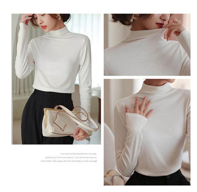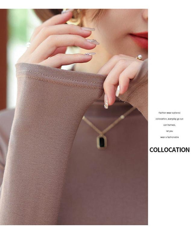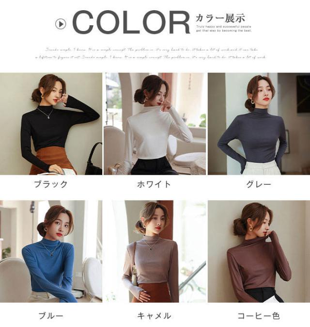 カットソー レディース 長袖 きれいめ 無地 秋 インナーウェア 長袖tシャツ ハイネック 重ね着 定番 シンプル 大人可愛い トップス 透けない 柔らかい 暖か ホワイト ブラック キャメル コーヒー色 ブルー グレー 春