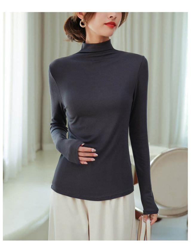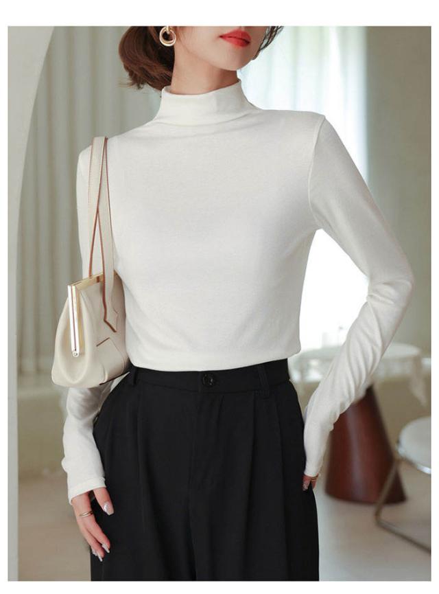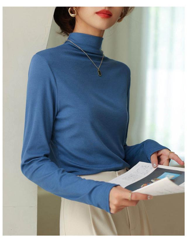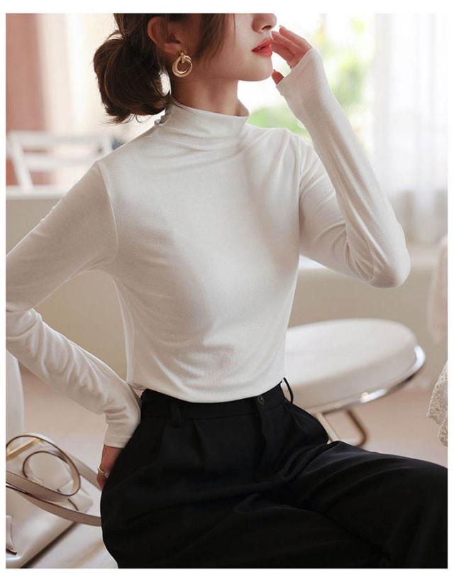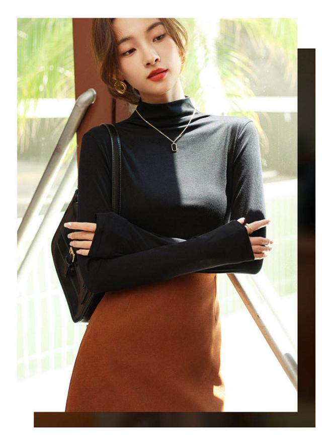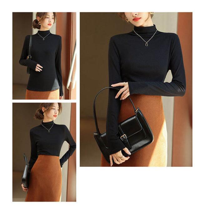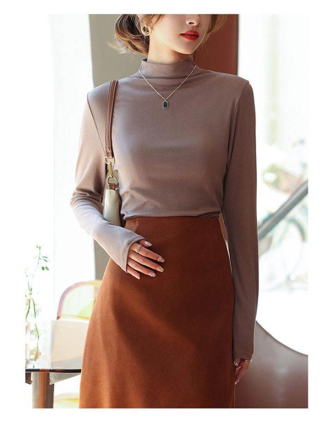 カットソー レディース 長袖 きれいめ 無地 秋 インナーウェア 長袖tシャツ ハイネック 重ね着 定番 シンプル 大人可愛い トップス 透けない 柔らかい 暖か ホワイト ブラック キャメル コーヒー色 ブルー グレー 春