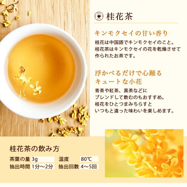 ●原材料:(特選桂花烏龍茶・黄金桂烏龍茶)烏龍茶、(桂花茶)桂花