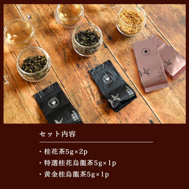 ●内容量:桂花茶5g×2p、特選桂花烏龍茶5g×1p、黄金桂烏龍茶5g×1p