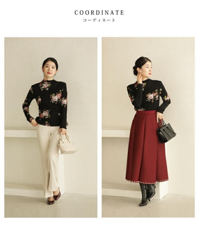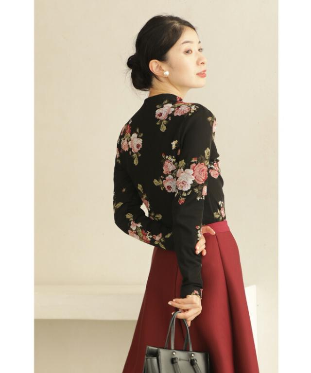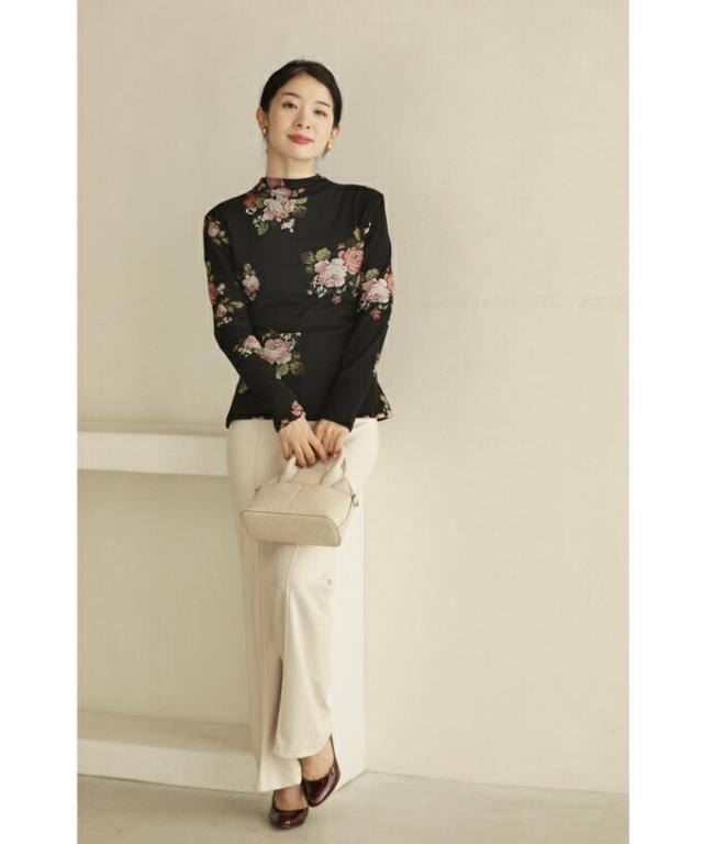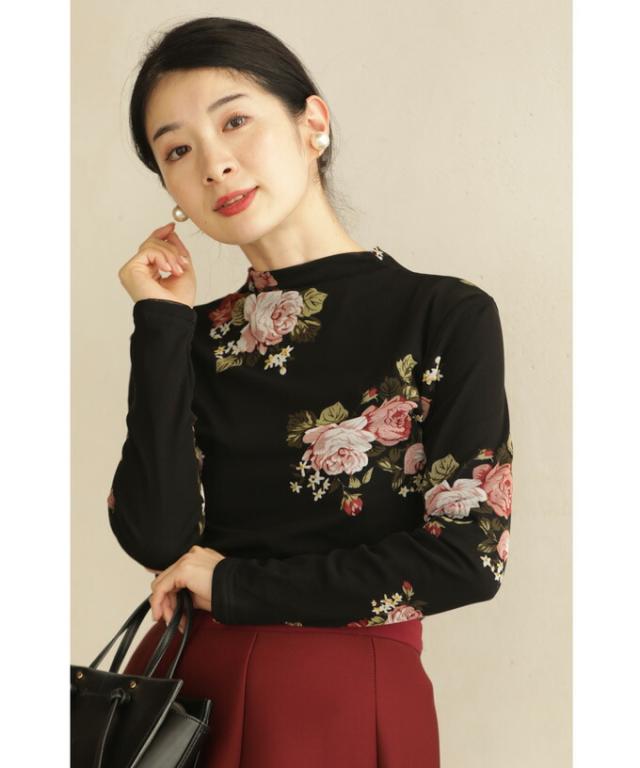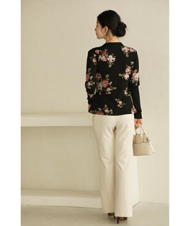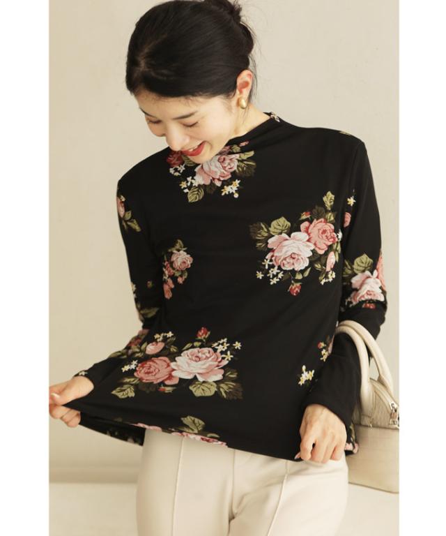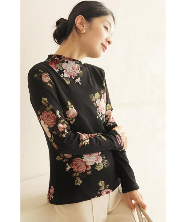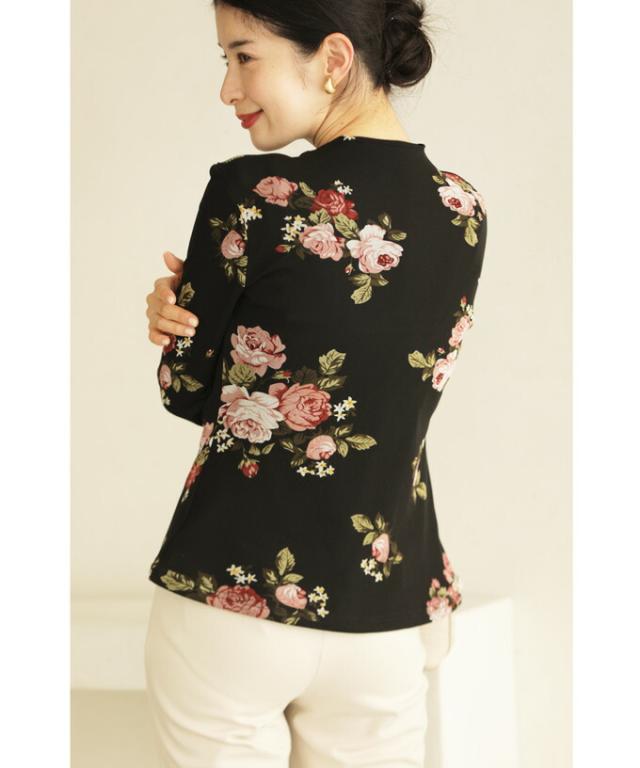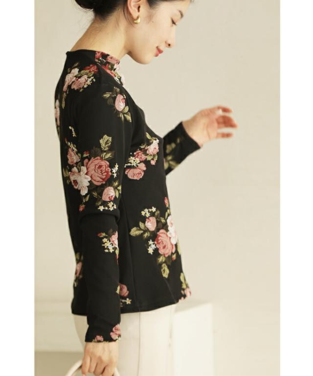 w50312nc(黒)裏起毛でぬくぬくあったか。エレガントなバラ柄プルオーバートップス 新作 新着 再入荷 CAWAII FRENCHPAVE フレンチパヴェ エレガント ベーシック カジュアル 可愛い かわいい カワイイ おしゃれ オシャレ お洒落 個性 個性的 定番 ベーシック 大人かわいい 大人可愛い 上品 女性らしい デザイン スタンダード ナチュラル きれいめ キレイめ シンプル フェミニン レディース レディースファッション 大人 ママ ミセス 30代 40代 50代 60代 プルオーバー トップス 長袖 長そで ロング袖 クルーネック ブラック 黒 バラ 花 裏起毛 暖かい ぬくい S M フリーサイズ フリー 小さめ 小さめサイズ 小さい 小さいサイズ 低身長 痩せ ほっそり 小柄 細身 標準サイズ F サイズ自由 日常着 普段着 日常使い 重ね着 春 秋 冬 秋服 秋物 春服 春物