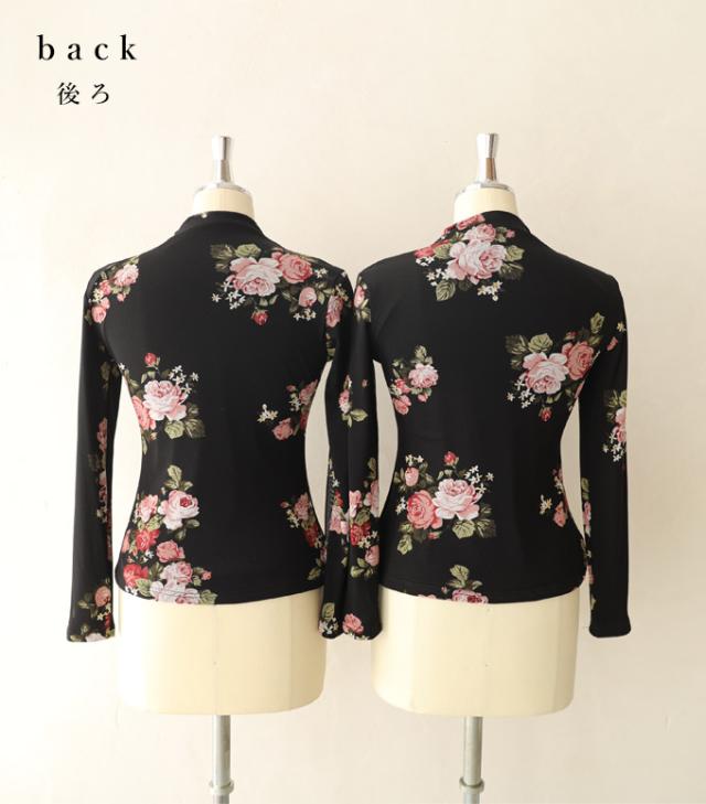 20251213sale (S~M対応) (黒) 裏起毛でぬくぬくあったか。エレガントなバラ柄プルオーバートップス w50312nc cawaii レディース ファッション 他にはない トップス 長袖 長そで ロング袖 クルーネック ブラック 黒 バラ 花 裏起毛 暖かい ぬくい S M 春 秋 冬