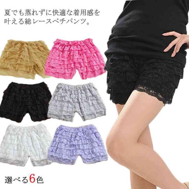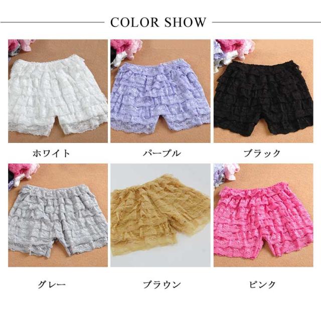 総レース ぺチパンツ レディース 8段フリル ペチコート インナーパンツ フリル レースパンツ ショートパンツ 3分丈 ショーツ ショートパンツ 快適 下着 インナー ルームウェア チラ見え防止送料無料