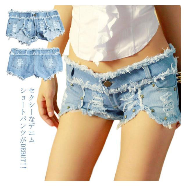 リベット付き ジーンズ レディース セクシー デニム ショートパンツ ダメージ ショーパン デニムパンツ ダメージ デニム ショートパンツ デニム ショーパン 切りっぱなし送料無料