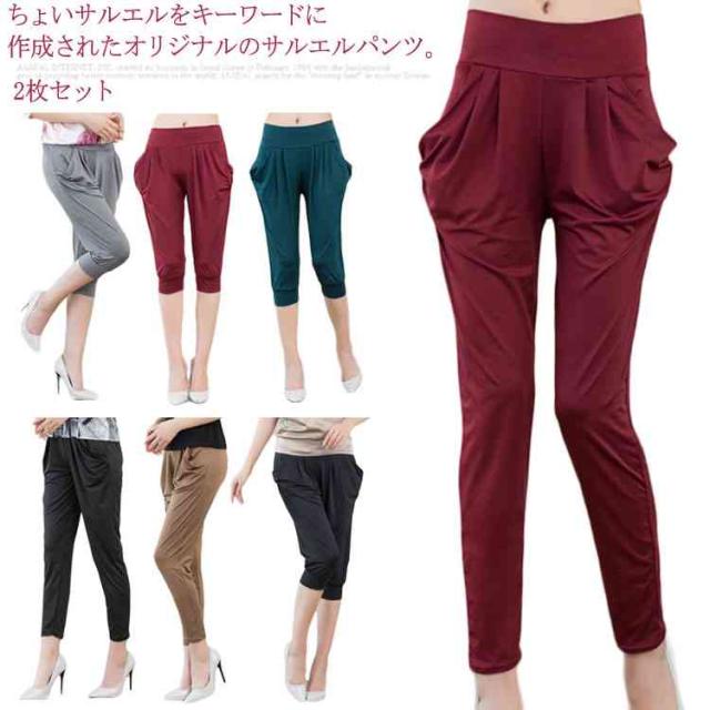 2枚セット サルエルパンツ レディース サルエル風 7分丈 パンツ 9分丈 パンツ サルエル 美脚 ジョガーパンツ ちょいサルエルパンツ イージーパンツ ヨガパンツ ダンス フィットネス ジム トレーニング ウオーキング送料無料