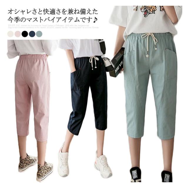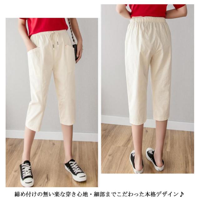綿麻 パンツ クロップドパンツ リネン サルエルパンツ レディース 7分丈 パンツ テーパードパンツ リネンパンツ ワイドパンツ リラックス パンツ送料無料