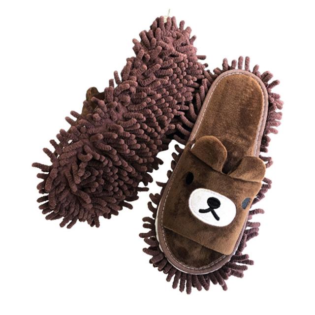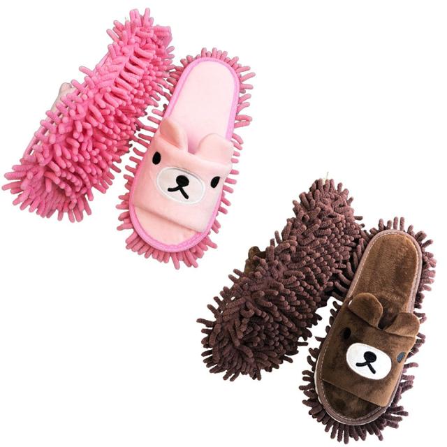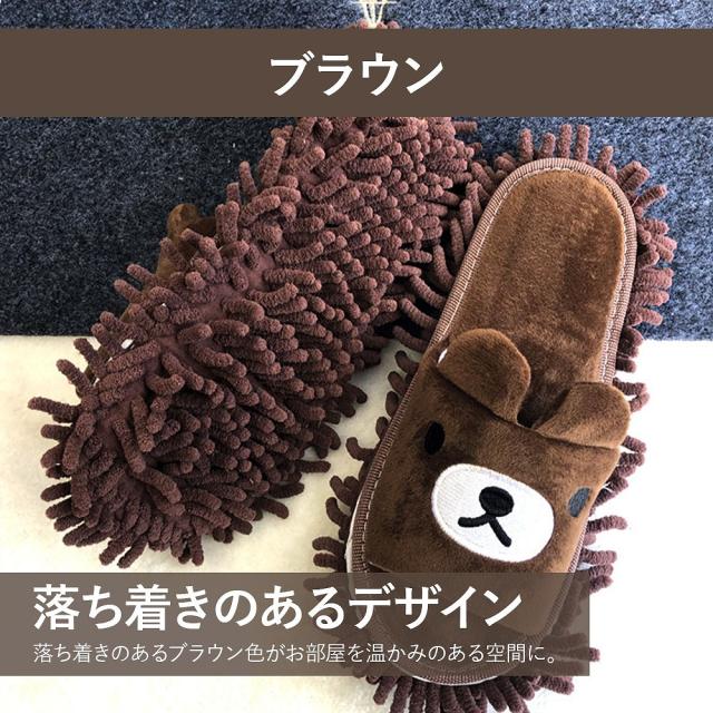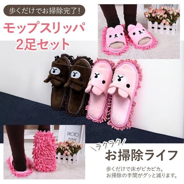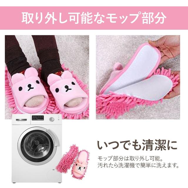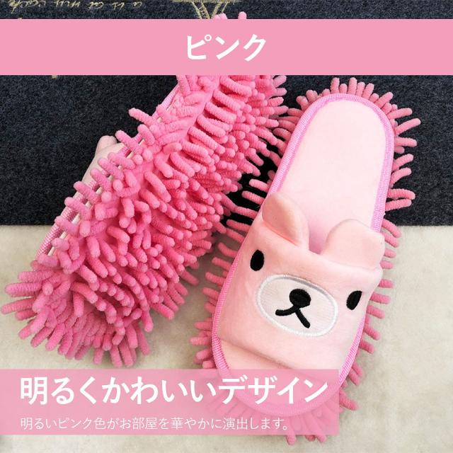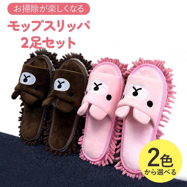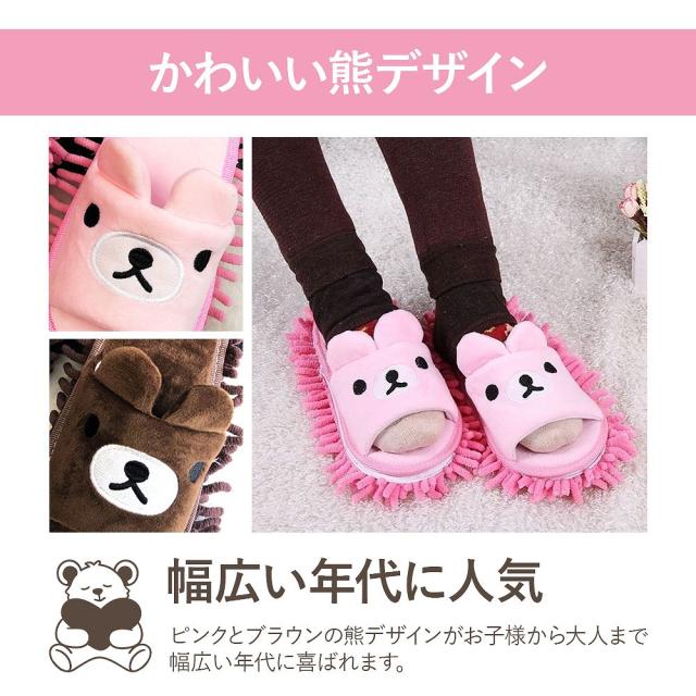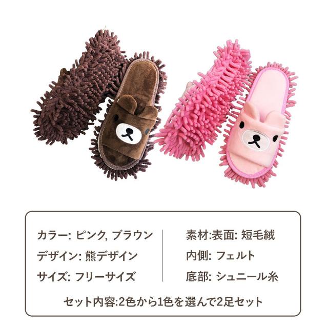 モップスリッパ2足セット 熊デザイン ピンク ブラウン レディス メンズ お掃除スリッパ ルームシューズ おそうじスリッパ 室内スリッパ サンダル 取り外し可能 agesugi_snk