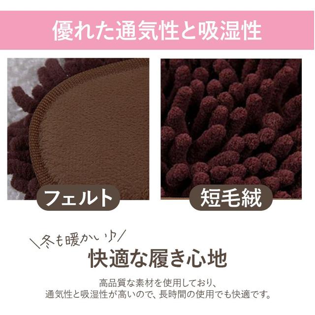 | 商品の説明 | このモップスリッパ2足セットは、お掃除が楽しくなること間違いなしのアイテムです。歩くだけで床がピカピカになるので、日常のお掃除がぐっと楽になります。ピンクとブラウン、2種類のカラーからお選びいただけます。特に熊のデザインはお子様から大人まで幅広い年代に喜ばれます。底面のモップは取り外し可能で、汚れたら洗濯機で洗うことができます。歩きながらササッとお掃除ができるので、お掃除が手間なくスムーズに行えます。高品質な素材を使用しており、吸湿排汗性に優れています。素材は表が短毛のふわふわした布、内側が柔らかなフェルト、底がシュニール糸を使用しています。特に秋と冬に適しています。お掃除が楽しくなるモップスリッパで、家事をもっと効率的に、もっと楽しく。このモップスリッパ2足セットで、新しいお掃除ライフを始めましょう。 |