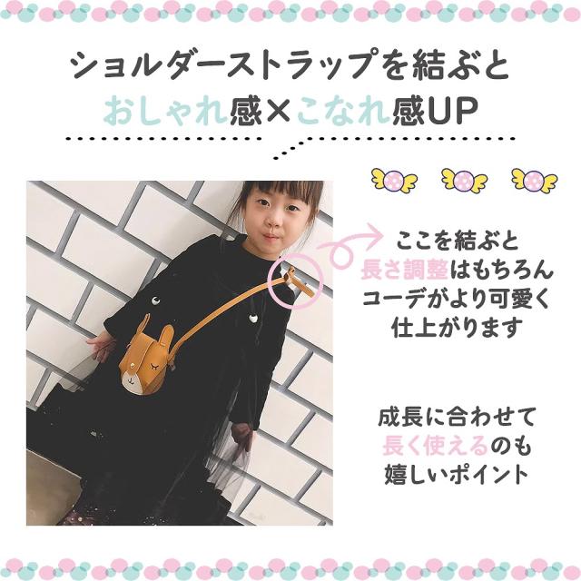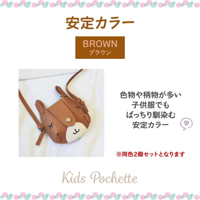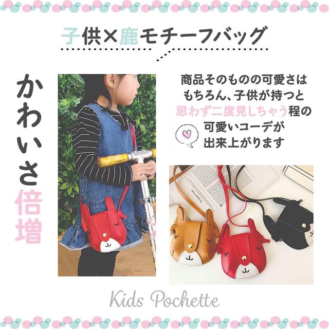 キッズポシェット 2個セット 可愛い 鹿のポシェット マグネットホック お洒落 長さ調整可 ブラック ブラウン レッド 差し色 お揃い リンクコーデ プレゼント用 agesugi_snk