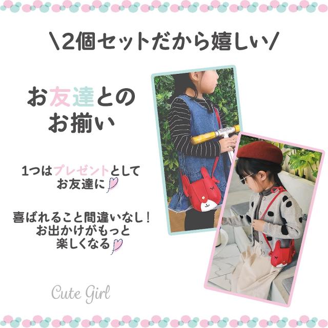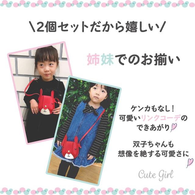 同色2個セットでの販売となるので、姉妹でお揃いで持つことができます。ケンカもなくなり可愛らしいリンクコーデの出来上がり。双子ちゃんにもおすすめです。また、一つは自分用にもう一つはお友達へのプレゼント用になどと、お友達ともお揃いコーデを楽しむことができます。喜ばれること間違いなし!お出かけがより楽しくなっちゃいます。