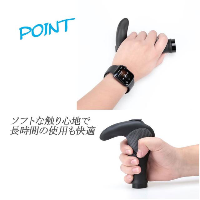 この「ハンドルグリップ自転車」は人間工学に基づいたオリジナルの形状。手のひら部分は丸みを帯びた太めのグリップ、母指球の当たる部分は丸みを抑えた広めのつくりで、しっかり力を入れられるだけでなく、長時間の自転車走行でも疲れにくくなっています。
