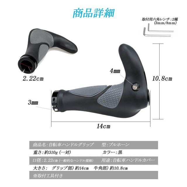 ハンドルグリップ 自転車 ハンドルバー クロスバイク マウンテンバイク 牛角グリップ ブルホーン 疲れにくい 防滑 衝撃軽減 アウトドア トレッキング カスタム agesugi_ssp