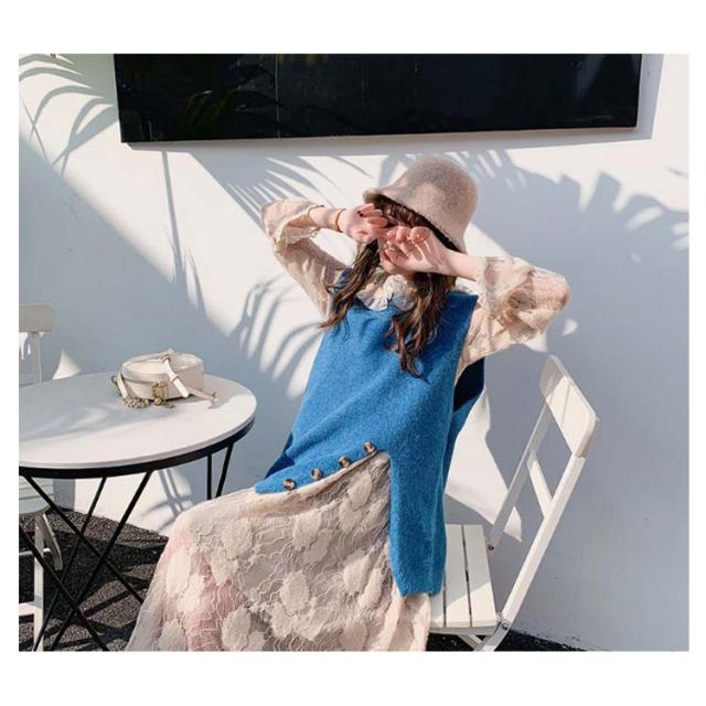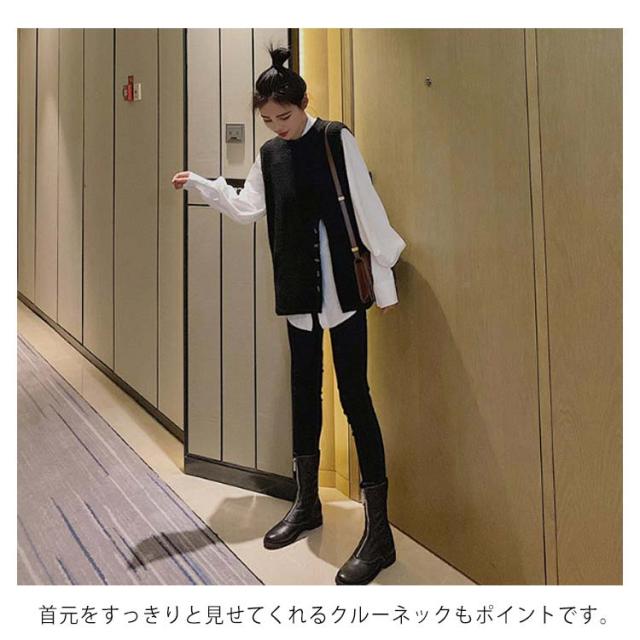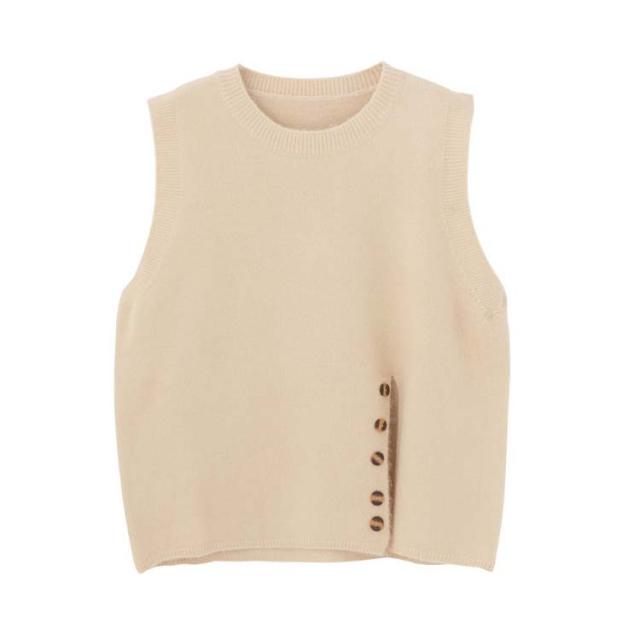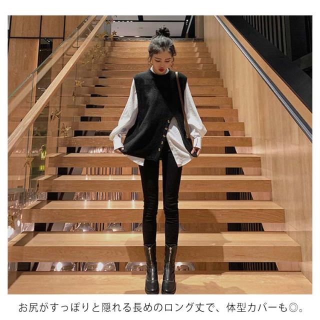 【送料無料】サイドスリット レディース ベスト ニットベスト サイドボタン クルーネック スリット ラウンドネック ロング丈 おしゃれ 大人 可愛い レイヤード コーデ ノースリーブ トップス 普段着 韓国 シンプル 無地 春 秋 冬 黒 ブラック ベージュ