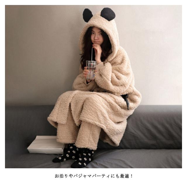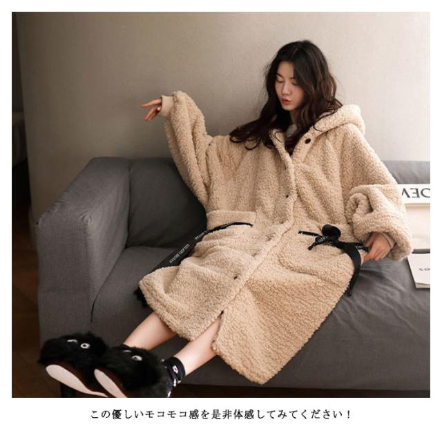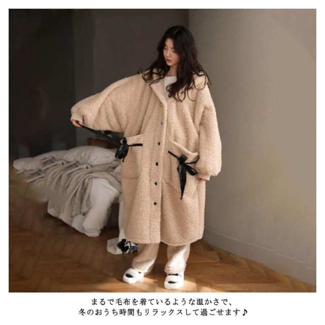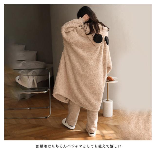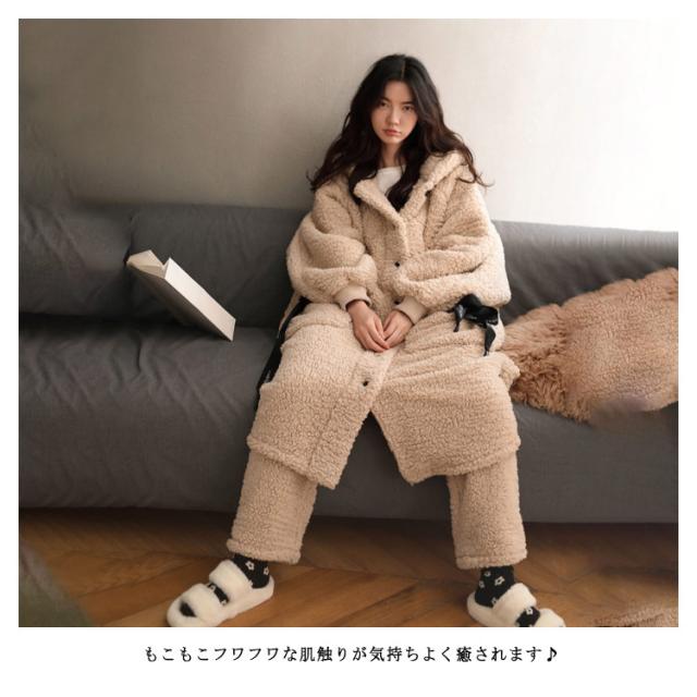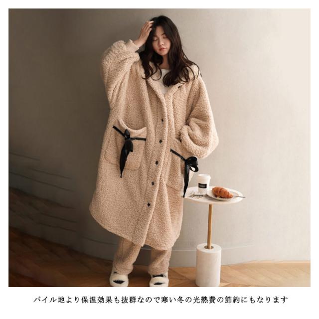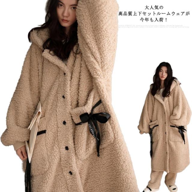 上下セット パジャマ レディース 可愛い ルームウェア バスローブ 着る毛布 もこもこ アウター 長袖 冬 部屋着 レディース 大きいサイズ コート モコモコ フード付き コート 春 秋 冬 前開き 厚手 長ズボン 上下 かわいい 新品高品質上下セット!
