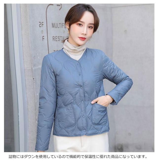 高密度ナイロン 薄手 レディース 軽量 可愛い ダウンベスト あったか 【送料無料】ライトダウン ショート 秋冬 ダウンジャケット インナーダウン ショート インナー 長袖 ジャケット ノーカラー ポケット ラウンドネック 大きいサイズ S~4L 40代 30代 ダウン