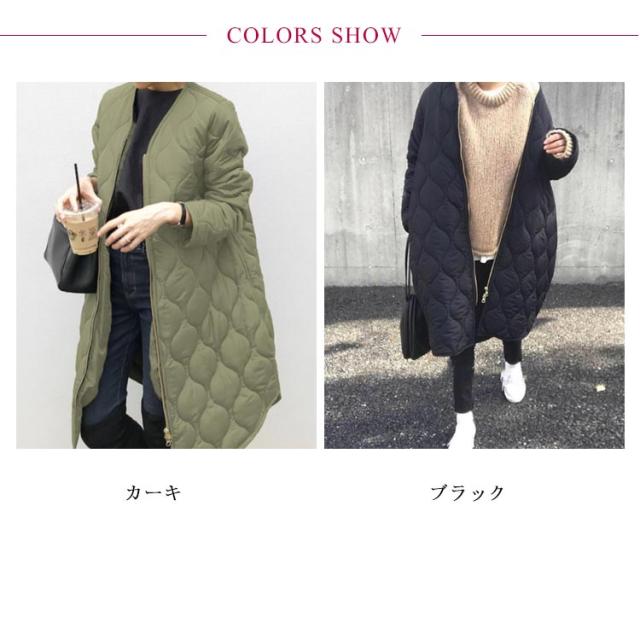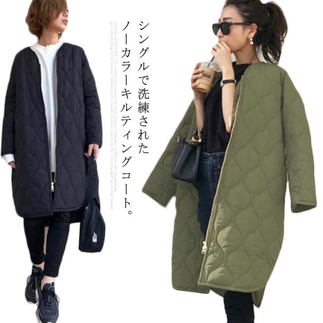 ノーカラーコート ノーカラーコート キルティングコート レディース コート キルトコート 中綿入り ミリタリージャケット 秋冬 ロング